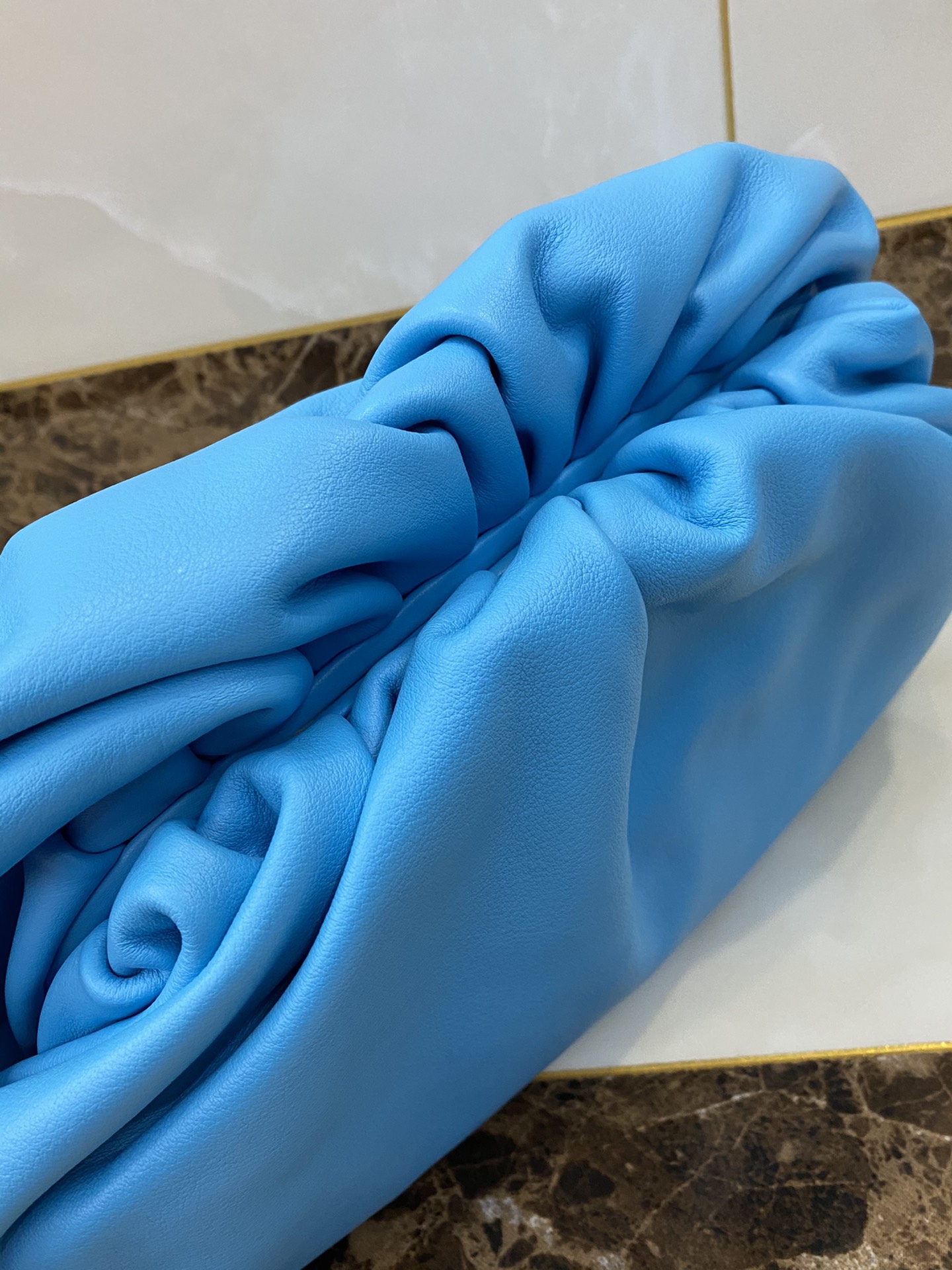 부드러운 질감의 캐비어 가죽으로 제작된 클러치백입니다.