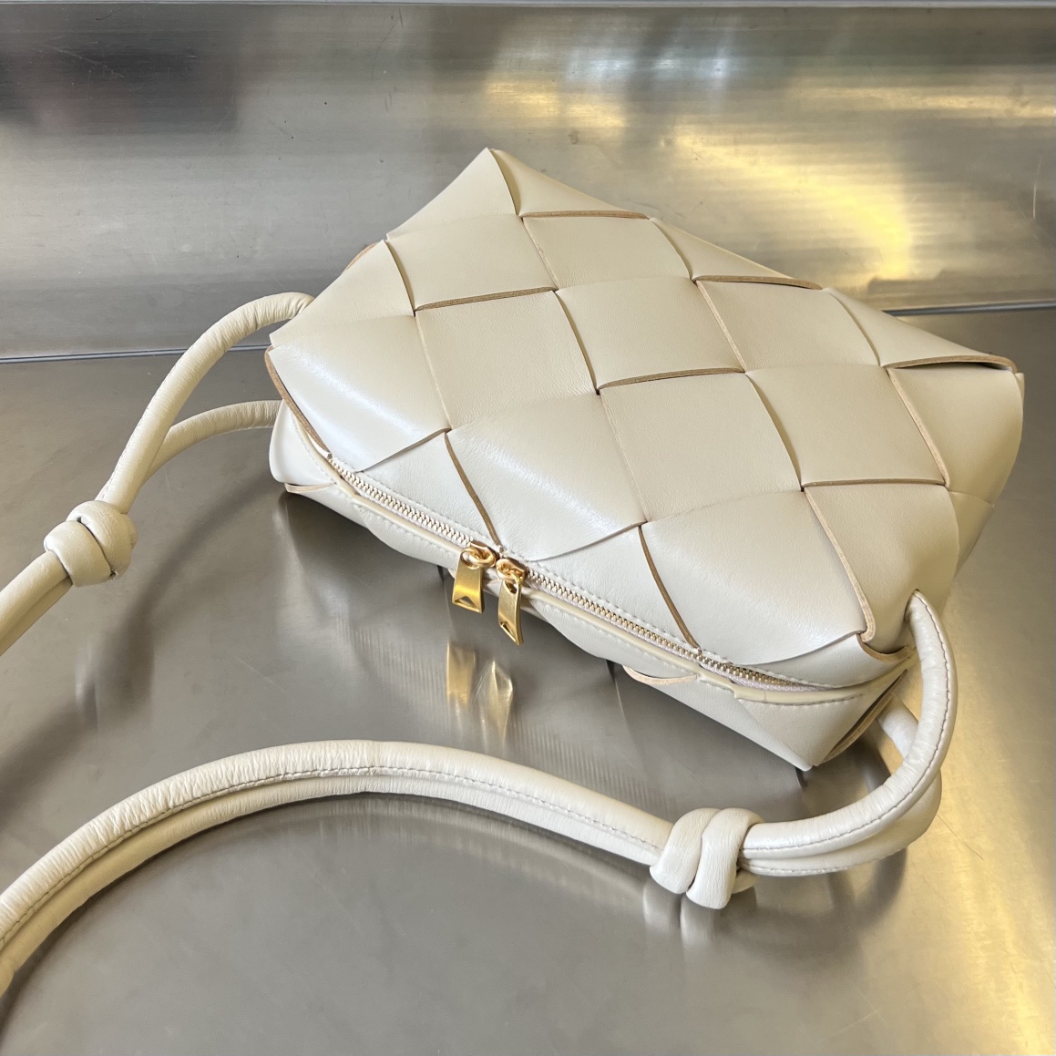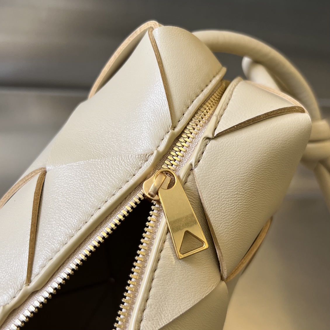 부드러운 질감의 크림 색상 클러치백입니다. 고급스러운 디자인으로 어떤 룩에도 잘 어울립니다.
