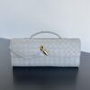 핸들 디자인으로 손에 들거나 클러치 형태로 착용할 수 있어 다양한 스타일링이 가능합니다. 금속 장식이 포인트로, 고급스러운 분위기를 연출합니다.