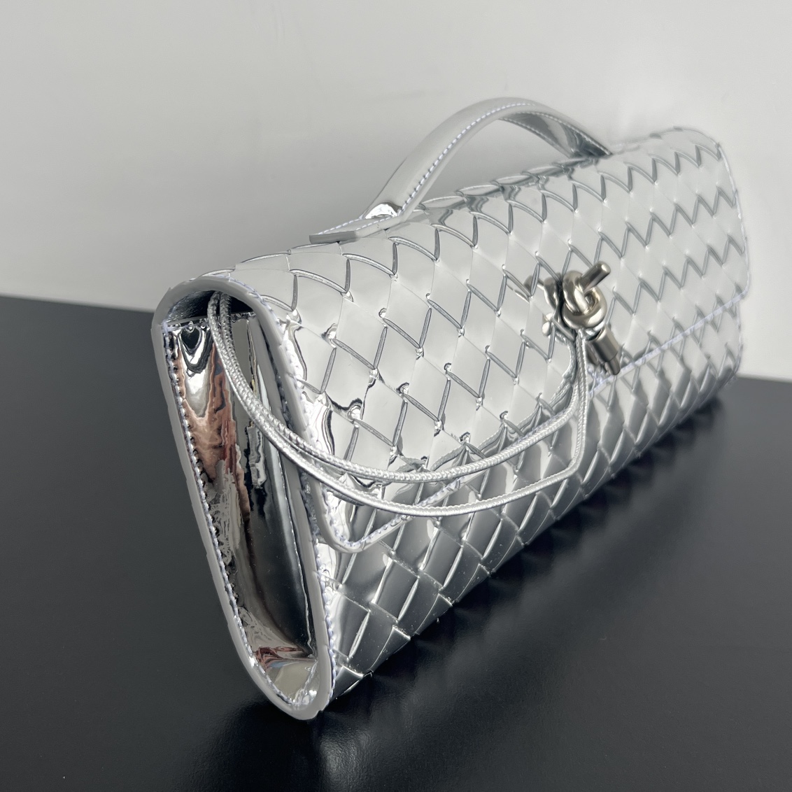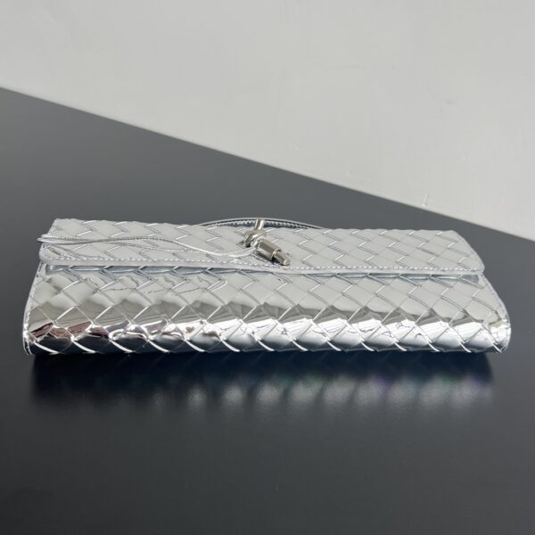 세련된 디자인과 고급스러운 느낌을 자아내며, 손잡이가 있어 손에 들거나 클러치 형태로 사용할 수 있습니다.