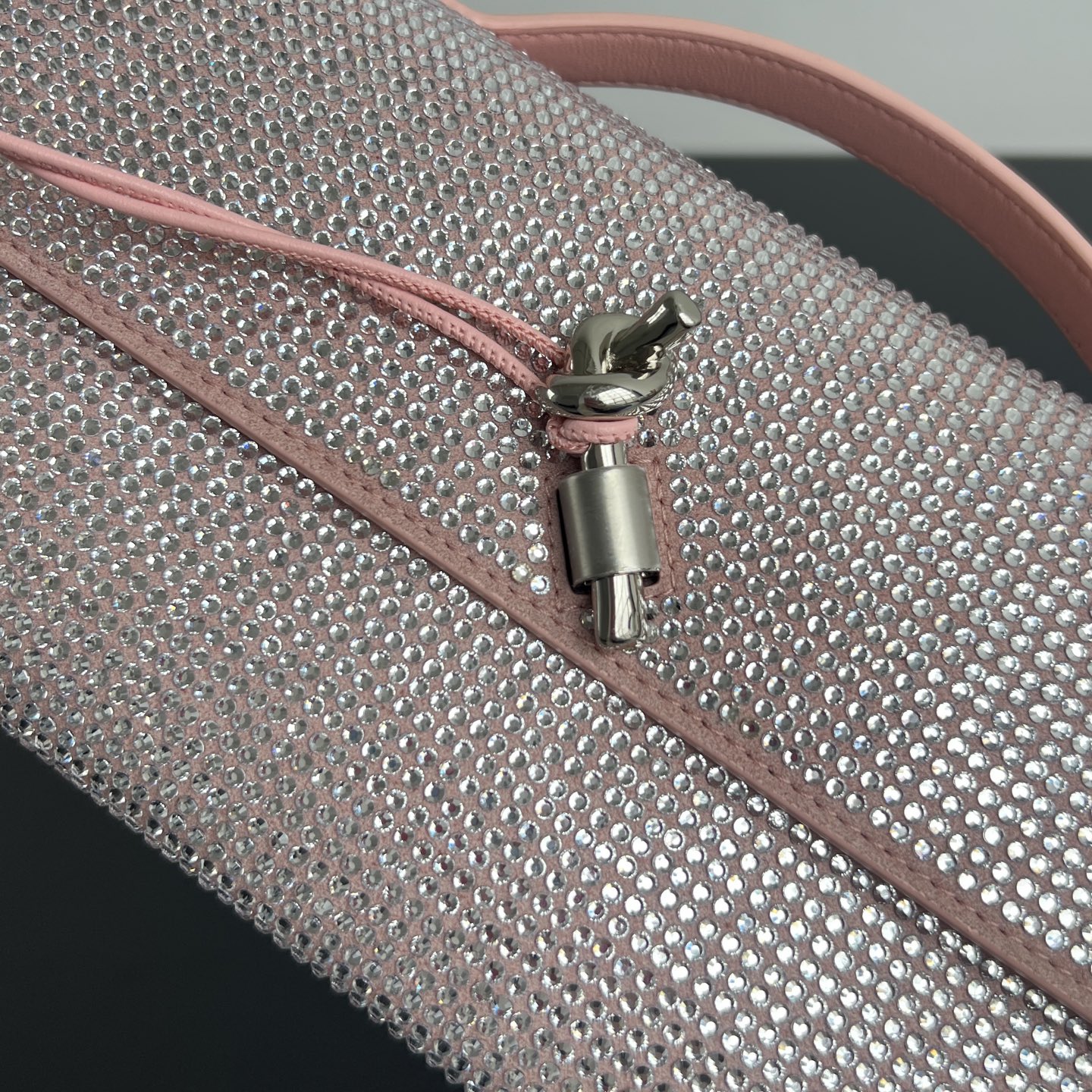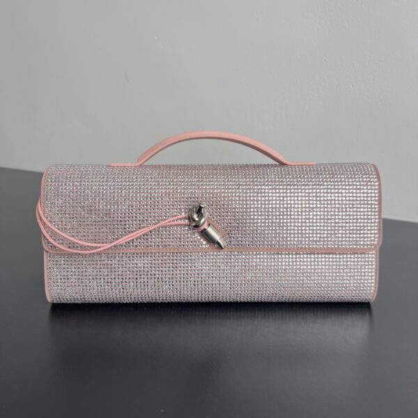 섬세한 스톤으로 장식된 이 클러치는 빛을 받을 때마다 반짝이는 매력을 발산합니다. 고급스러운 디자인으로, 특별한 저녁 행사나 파티에 완벽하게 어울립니다.