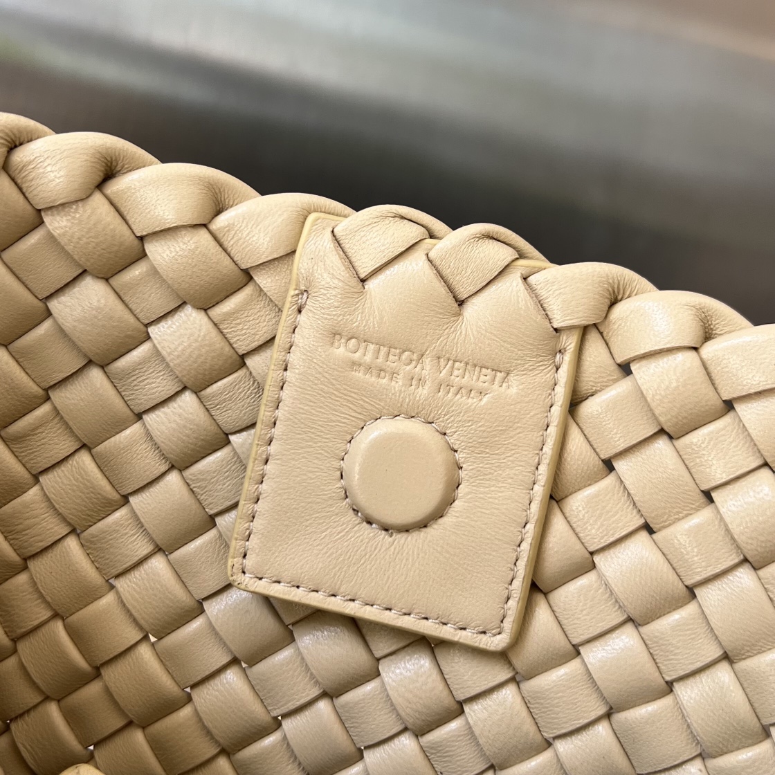 부드러운 양가죽으로 제작된 보테가의 클릭커 백입니다. 고급스러운 직조 디자인이 돋보이며, 브랜드의 뛰어난 장인정신을 느낄 수 있습니다.