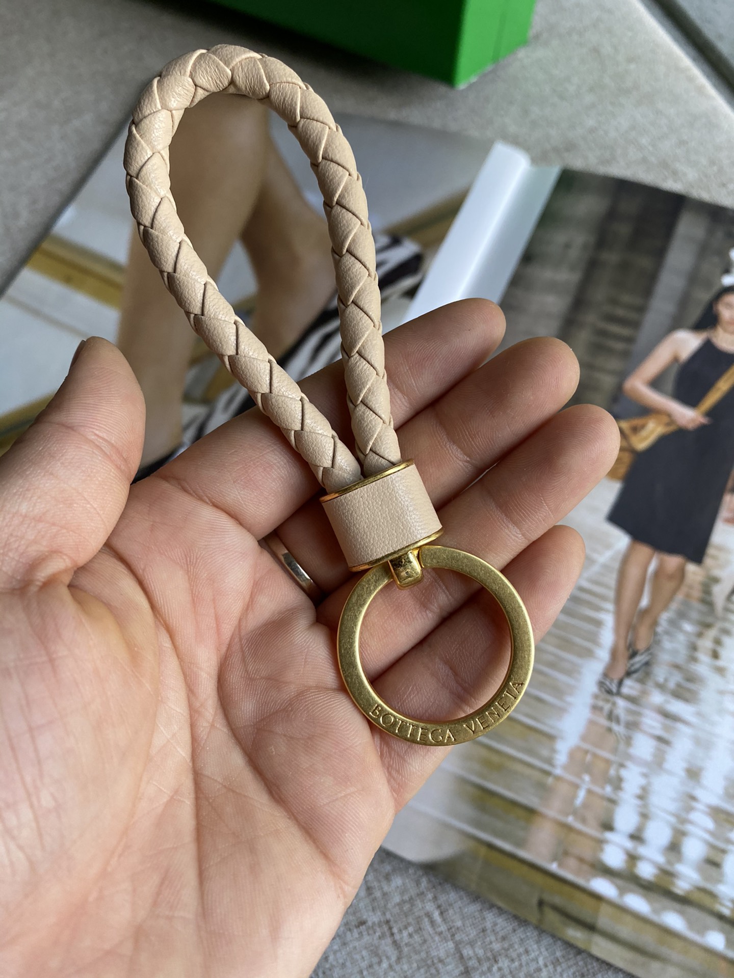 보테가의 키링은 언제나 사랑받는 필수 아이템입니다. 고급스러운 빈티지 골드 컬러의 하드웨어가 매력적이며, 손에 쥐었을 때 느껴지는 묵직함이 특별한 경험을 선사합니다.