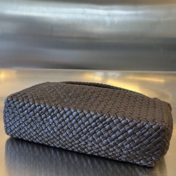 핸들 부분은 전부 가죽으로 세심하게 엮여 있으며, 금색 원형 장식이 우아함을 더합니다. 이 핸드백은 조용한 럭셔리를 추구하는 분들에게 완벽한 선택이 될 것입니다.