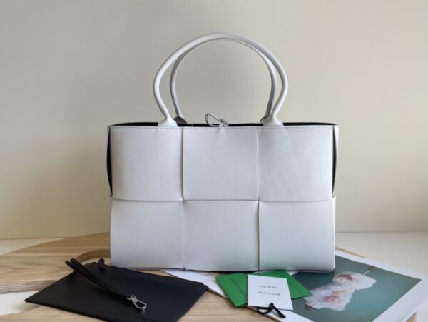 고급스러운 편직 가죽으로 제작된 토트백입니다.