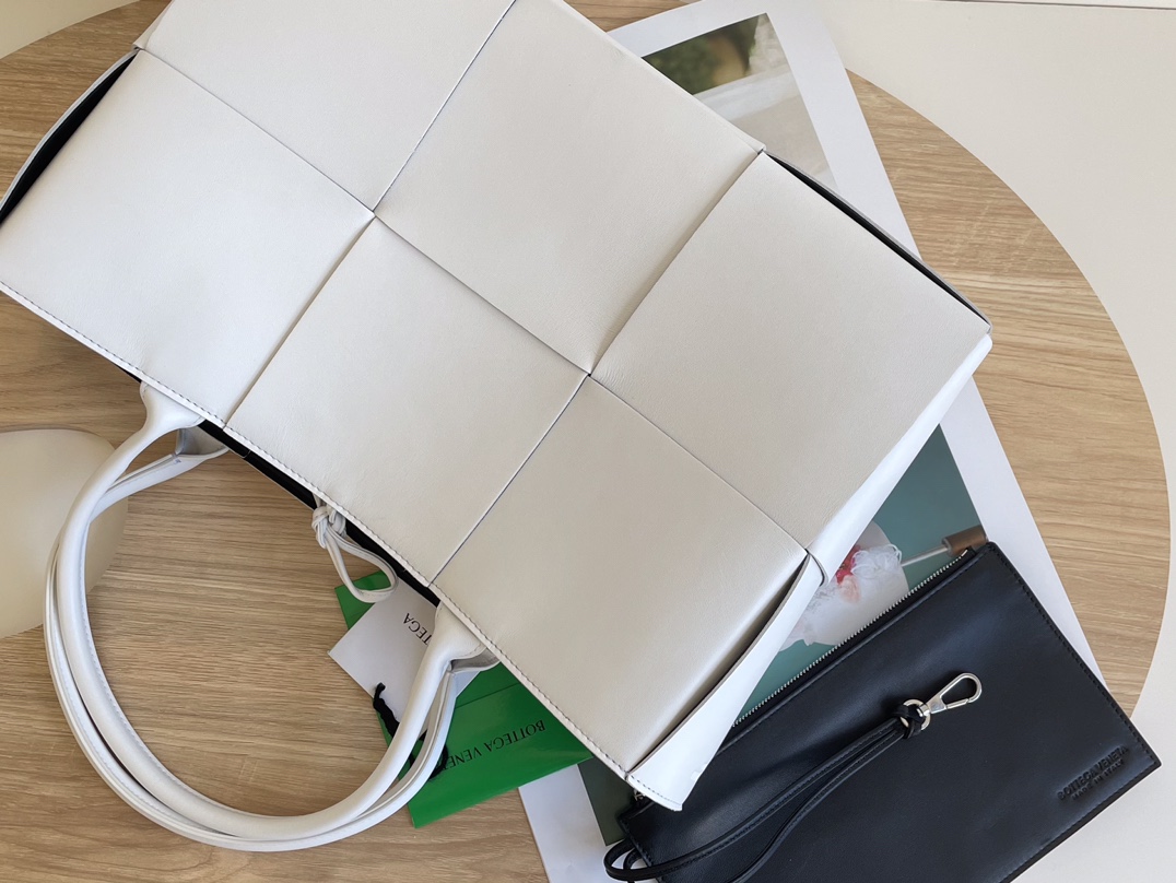 고급스러운 편직 가죽으로 제작된 토트백입니다.
