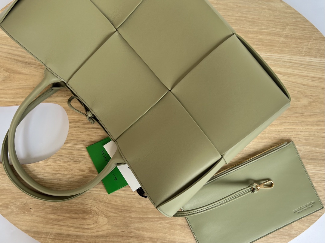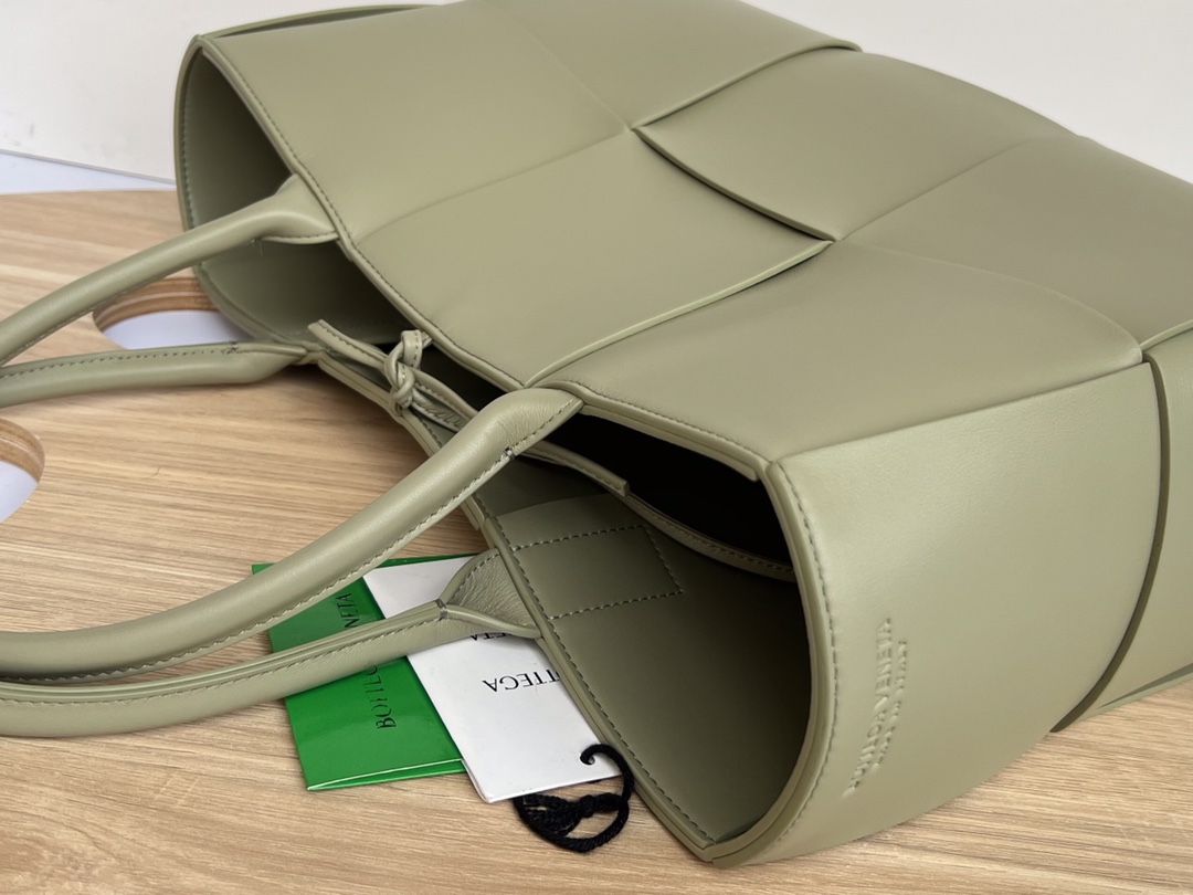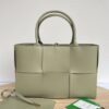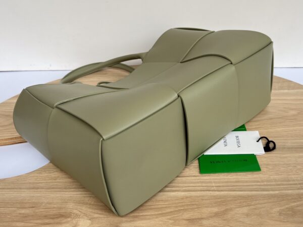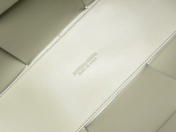 고급스러운 편직 가죽으로 제작된 이 토트백은 세련된 디자인이 돋보입니다.