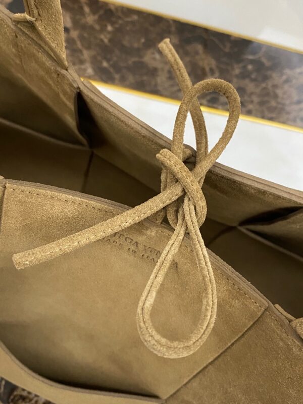 고급스러운 스웨이드 소재로 제작된 보테가의 토트백입니다. 부드러운 질감과 세련된 디자인이 특징으로, 어떤 스타일에도 잘 어울립니다.