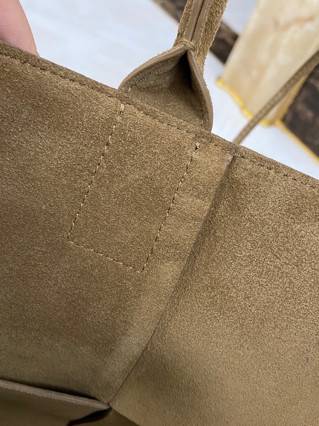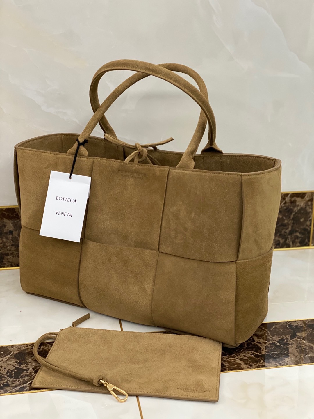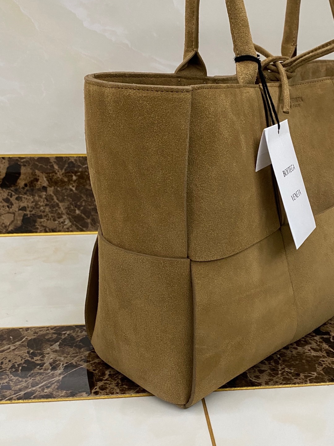 고급스러운 스웨이드 소재로 제작된 보테가의 토트백입니다. 부드러운 질감과 세련된 디자인이 특징으로, 어떤 스타일에도 잘 어울립니다.