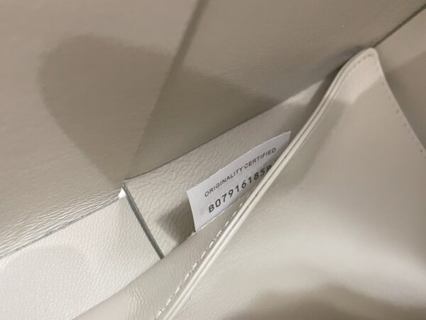부드러운 양가죽 소재로 제작된 이 토트백은 세련된 화이트 컬러가 돋보입니다.