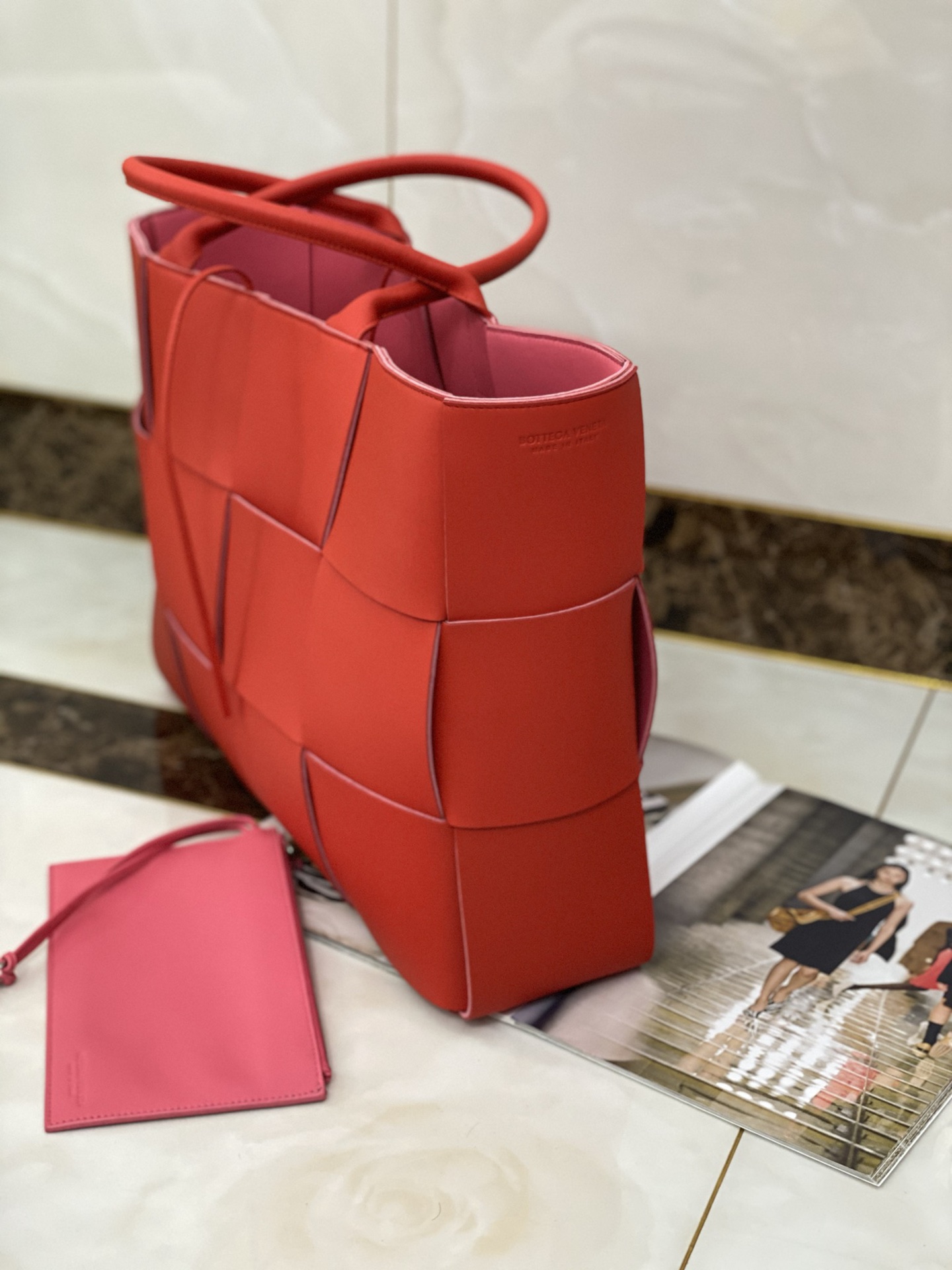 부드러운 양가죽 소재로 제작된 이 토트백은 통근에 최적화된 디자인입니다.