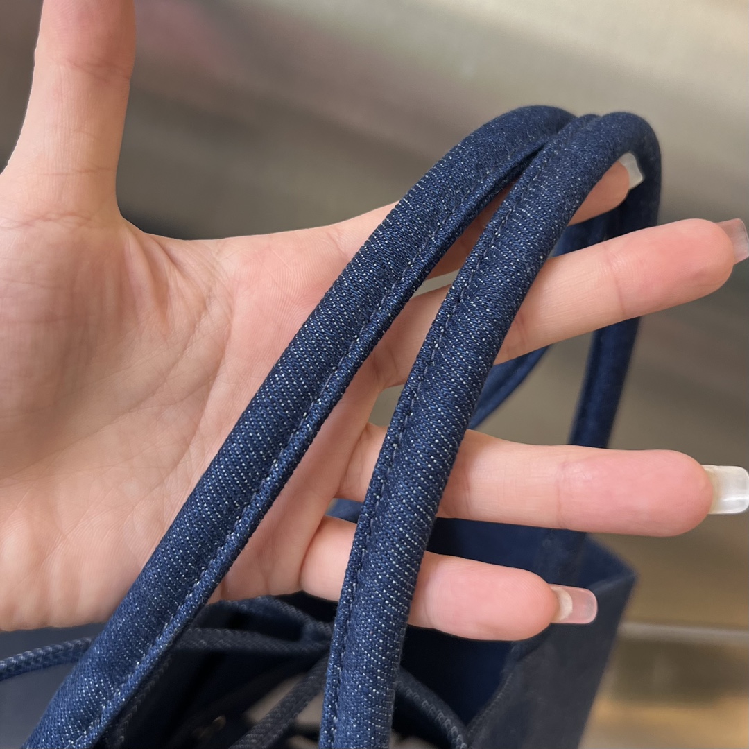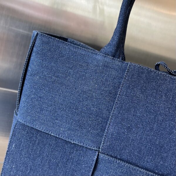 부드럽고 내구성이 뛰어난 데님 소재로 제작된 보테가의 토트백입니다.