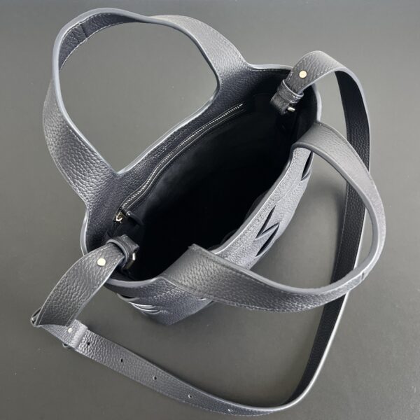 가방의 손잡이는 자연스럽게 연결되어 있으며, 탈부착 가능한 어깨끈이 있어 일상적인 캐주얼 룩은 물론, 격식 있는 자리에서도 우아한 분위기를 연출할 수 있습니다.