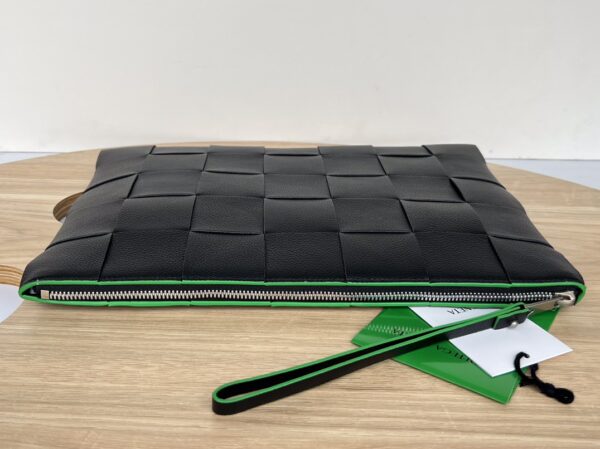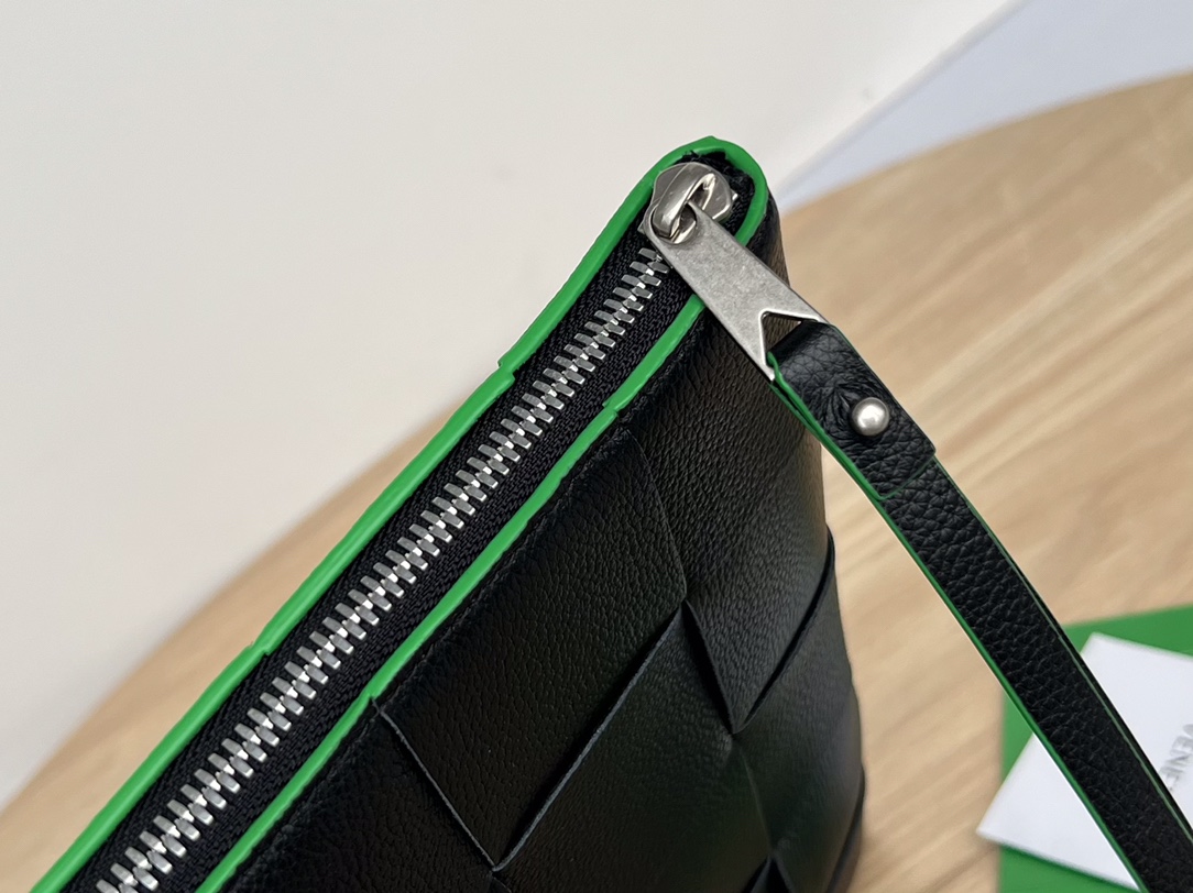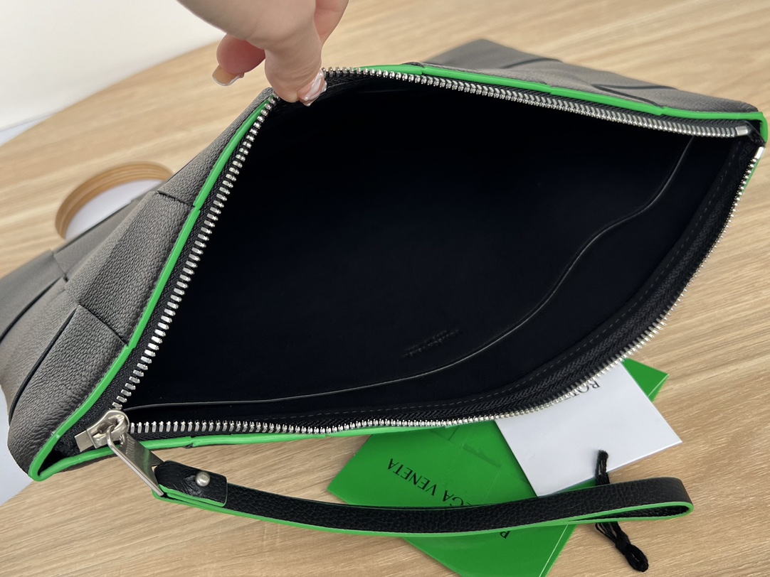 부드러운 소가죽으로 제작된 이 손가방은 보테가의 상징적인 편직 공예가 돋보입니다.