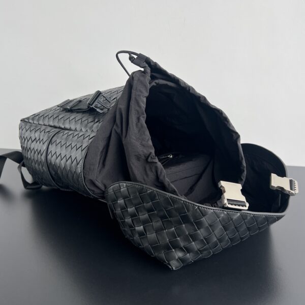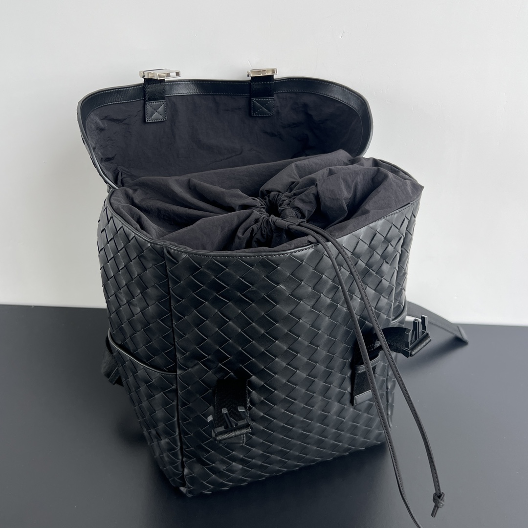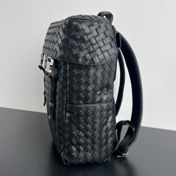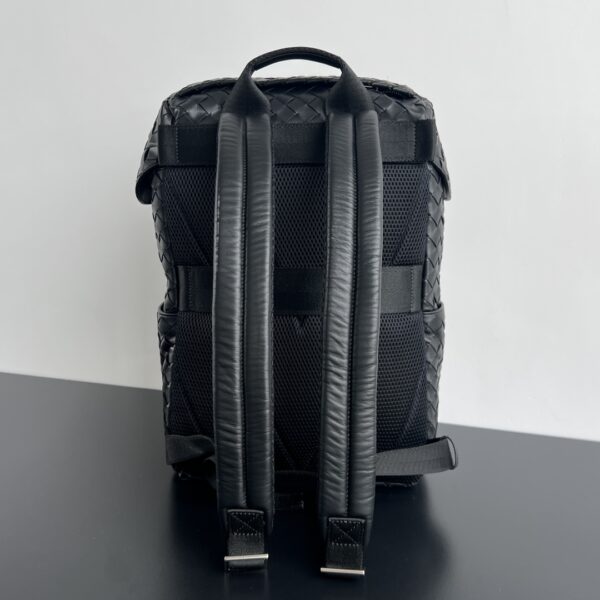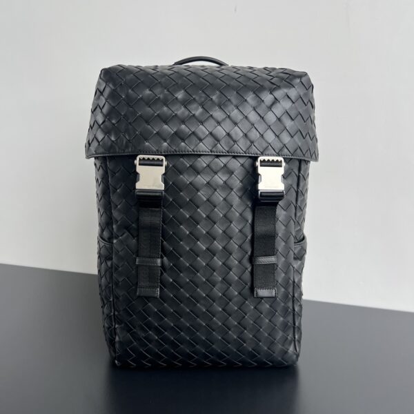 부드럽고 편안한 소가죽으로 제작된 이 백팩은 고급스러운 편직 디자인이 돋보입니다.