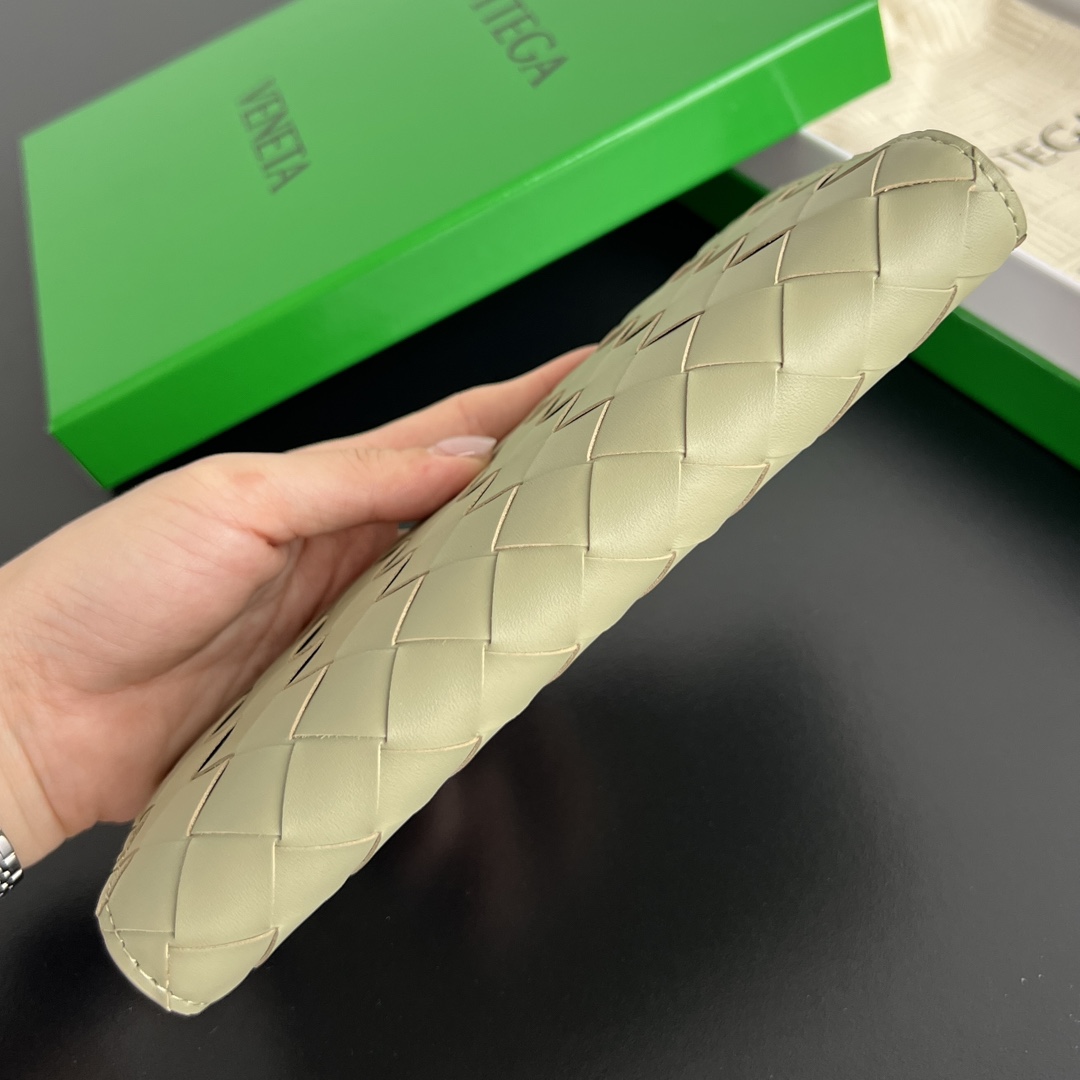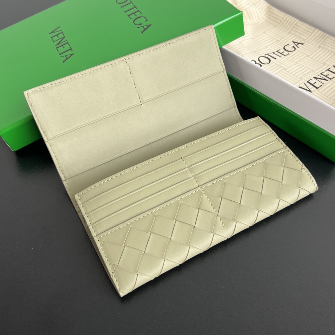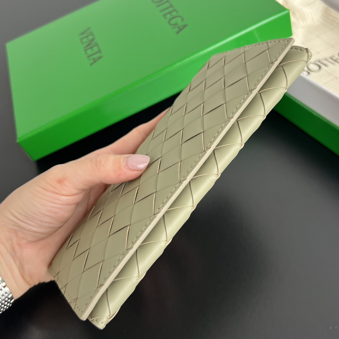 보테가의 편직 플랩 롱 지갑은 실용성을 최우선으로 고려한 디자인입니다.