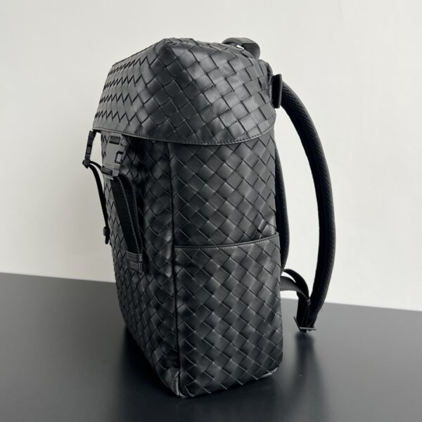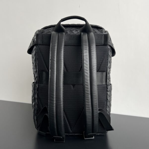 부드럽고 편안한 소가죽으로 제작된 이 백팩은 고급스러운 편직 공법이 돋보입니다.