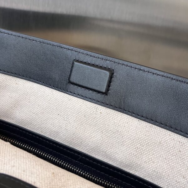 스타일리시한 디자인과 함께, 튼튼한 관통형 가죽 손잡이가 매력적인 포인트를 더합니다. 손에 들거나 어깨에 걸쳐 편리하게 사용할 수 있어 데일리 아이템으로 적합합니다.