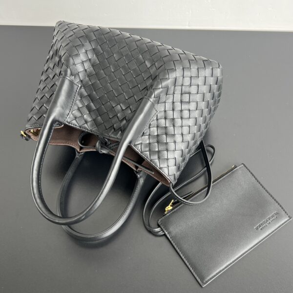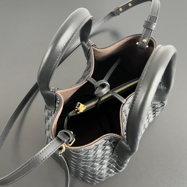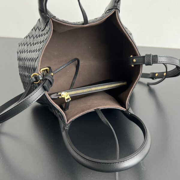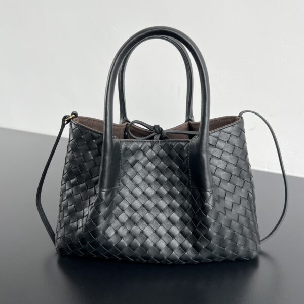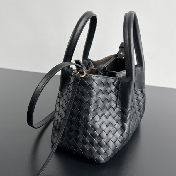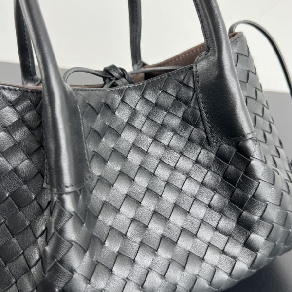 보테가의 피나코테카 미니 토트백은 BV의 상징적인 엮음 기법으로 제작되었습니다.