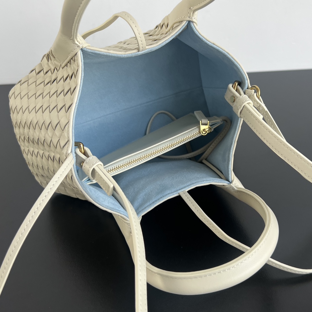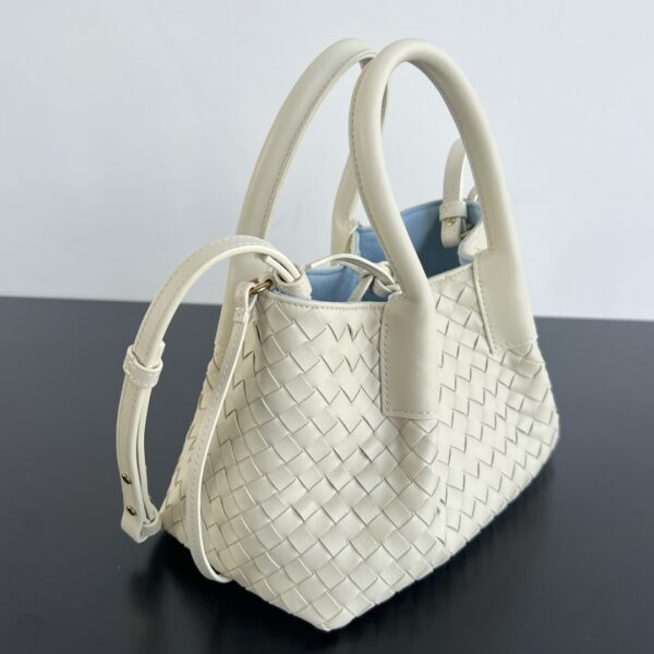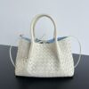 보테가의 핀아코테 소형 토트백은 BV의 상징적인 엮음 기법으로 제작되었습니다.