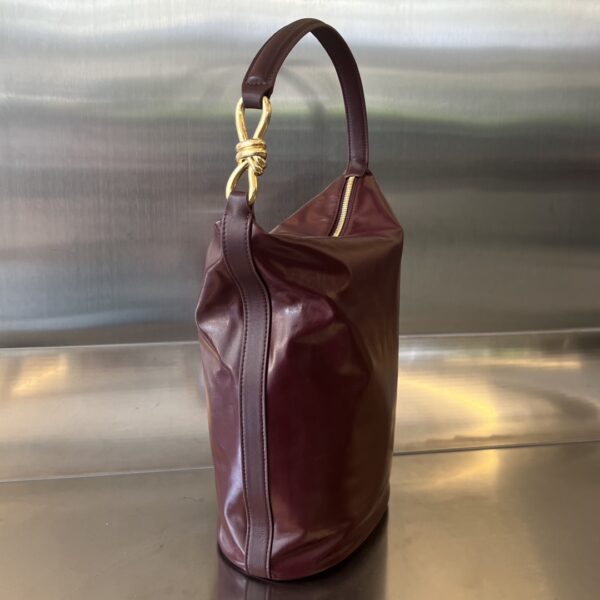 부드러운 광택의 소가죽으로 제작된 호보 넛 숄더백입니다.
