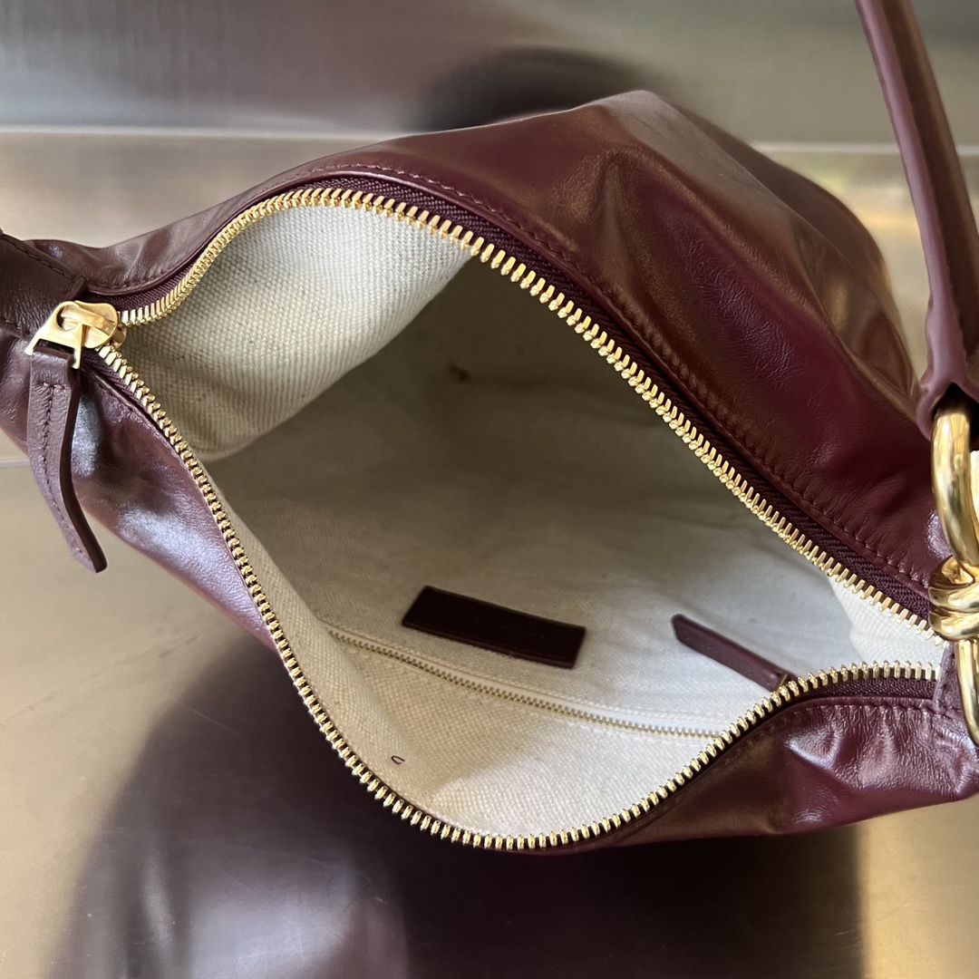 부드러운 광택의 소가죽으로 제작된 호보 넛 숄더백입니다.