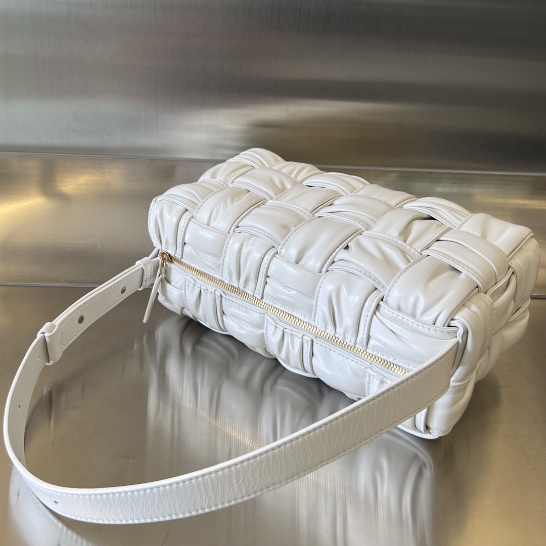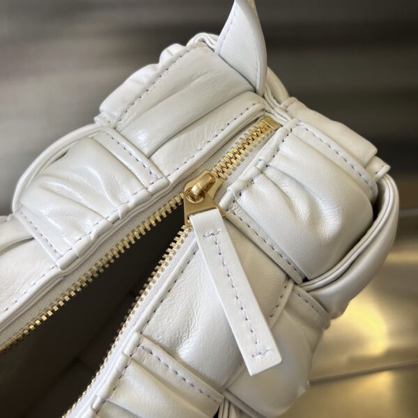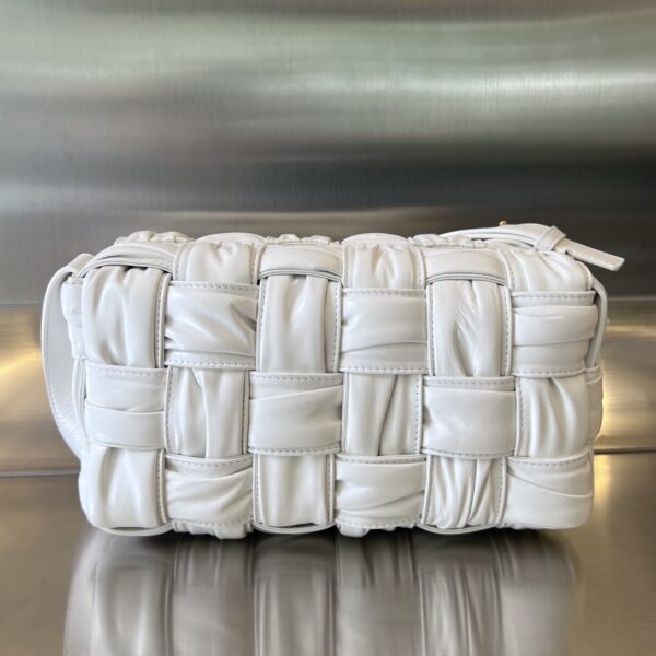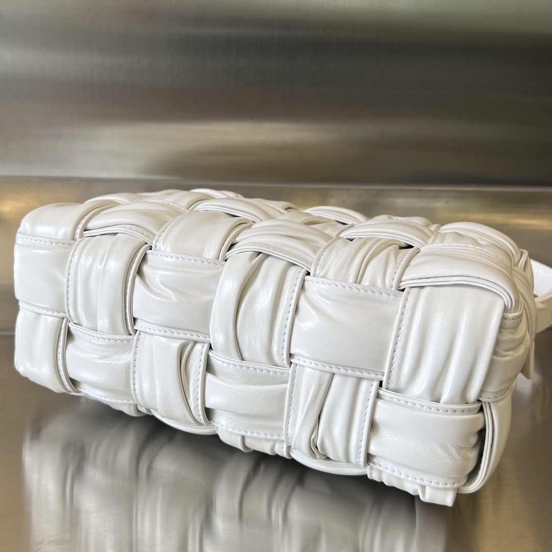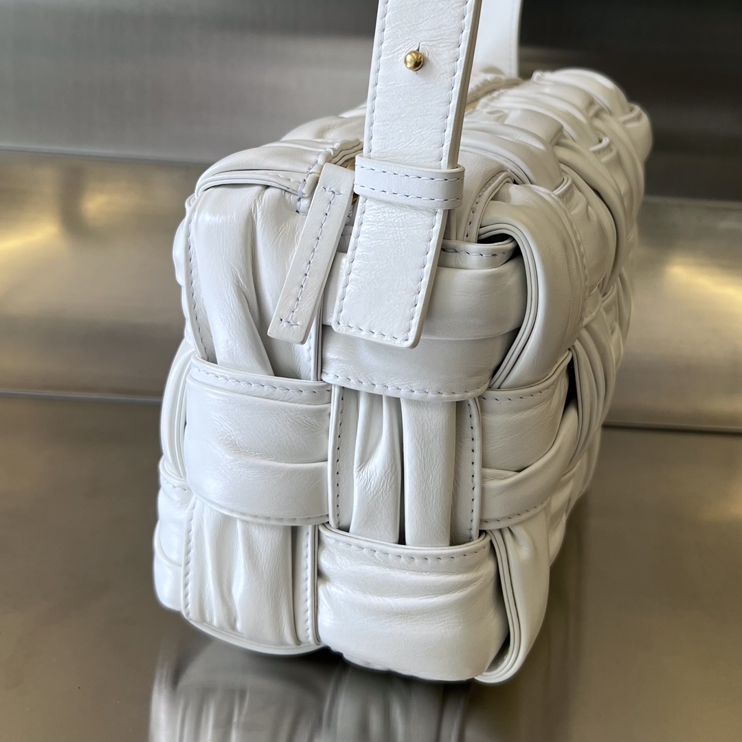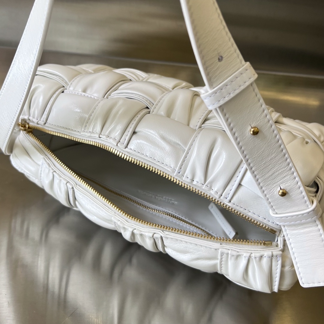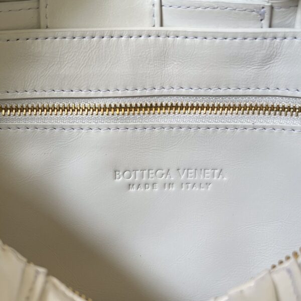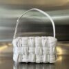 보테가의 2022FW 시즌 손잡이 가방은 독창적인 손으로 짠 주름 디자인이 돋보입니다.
