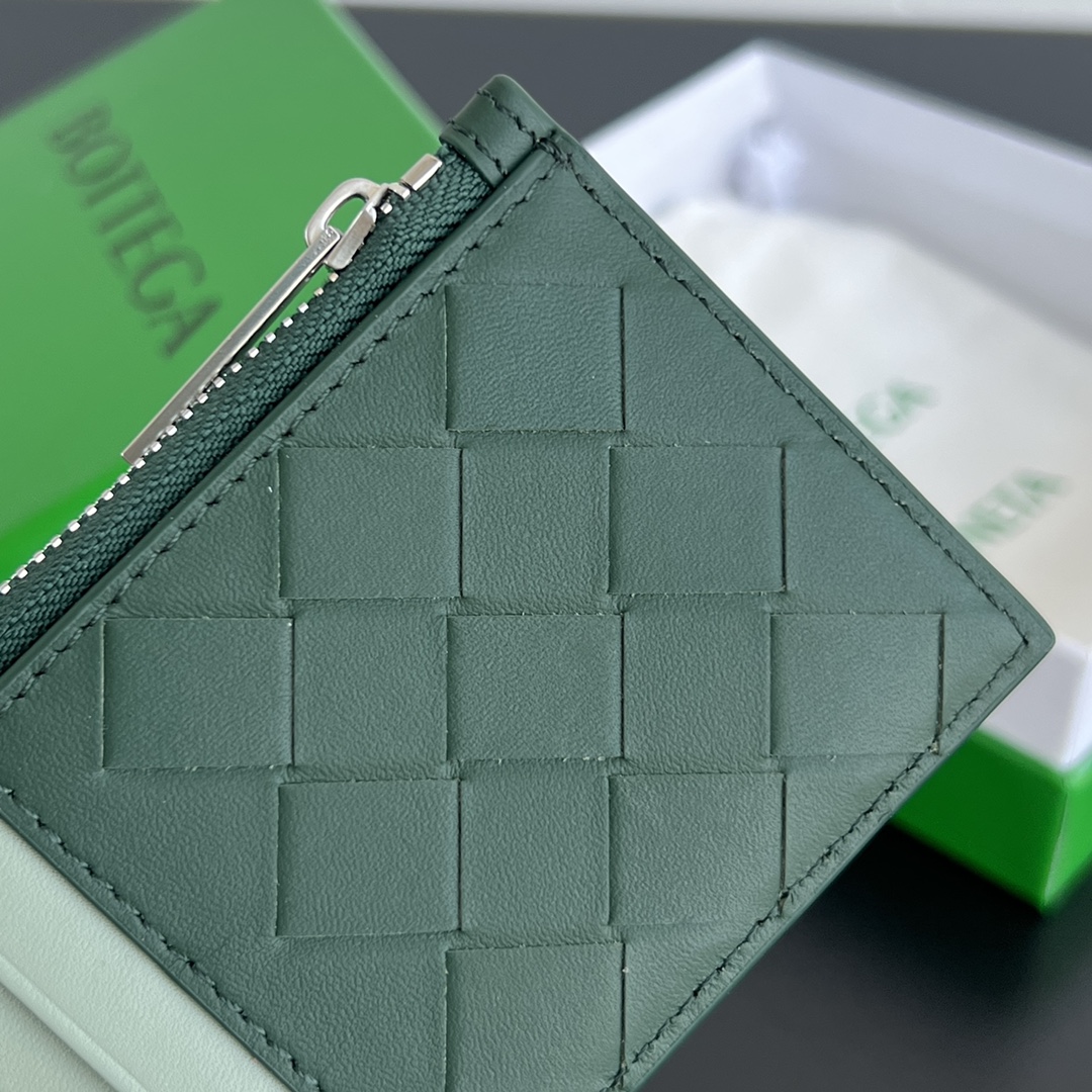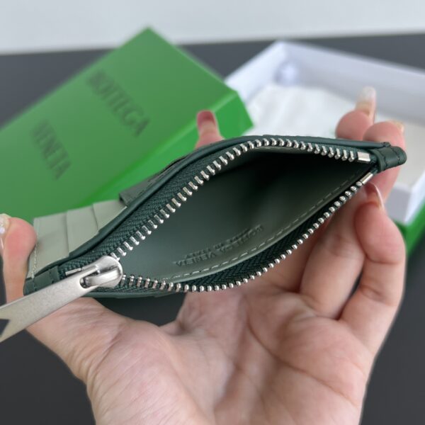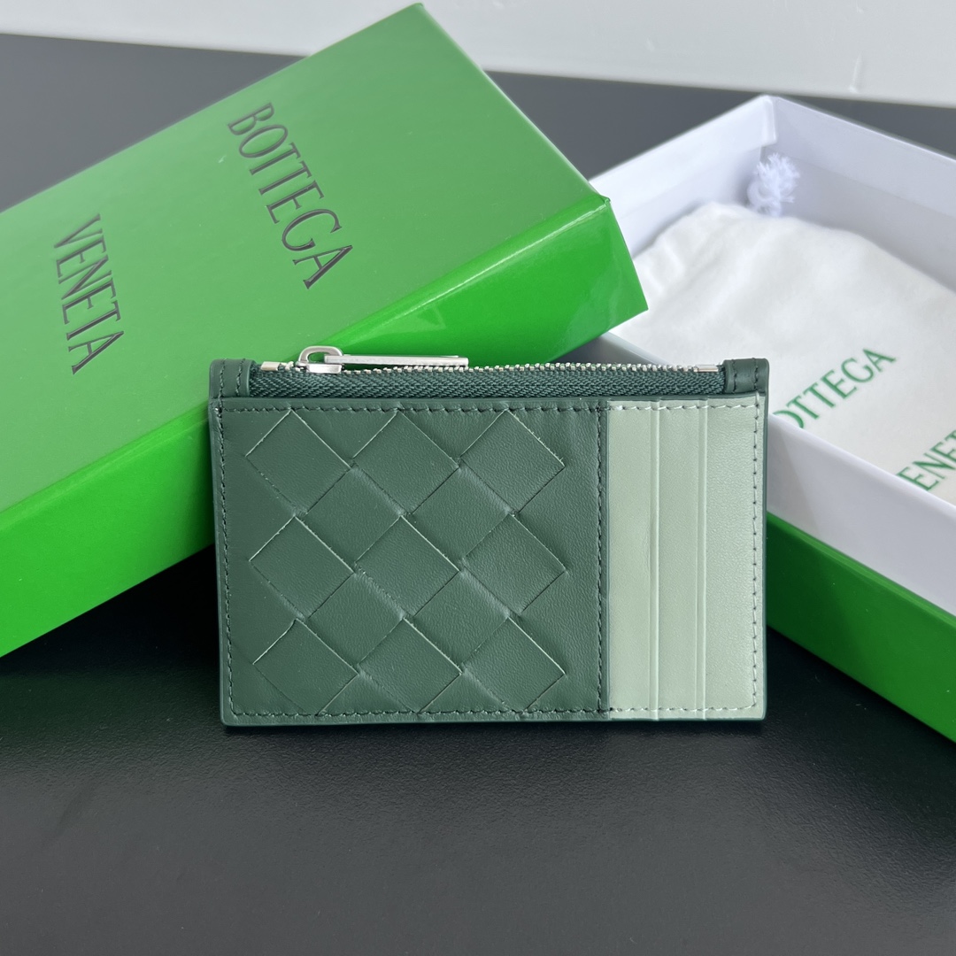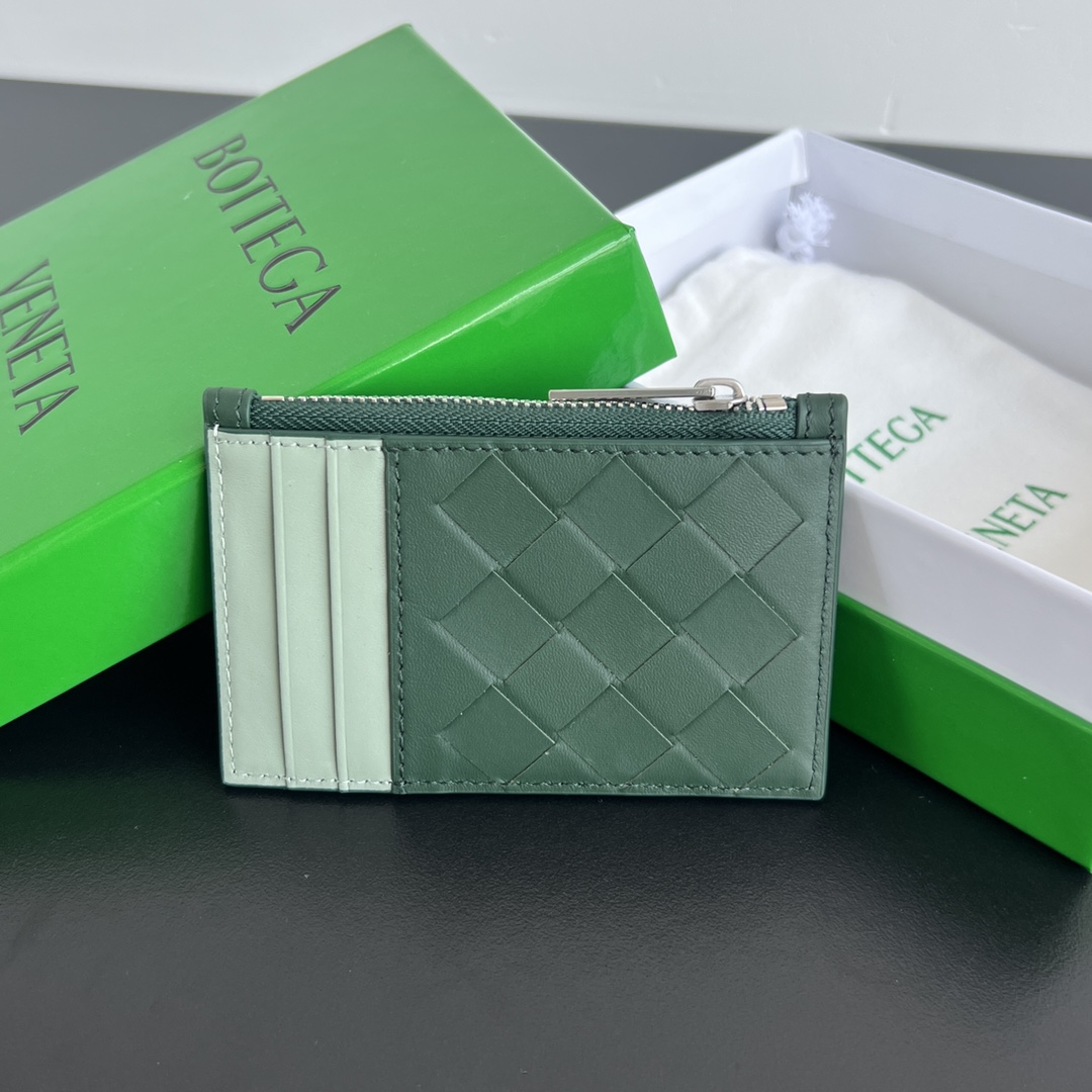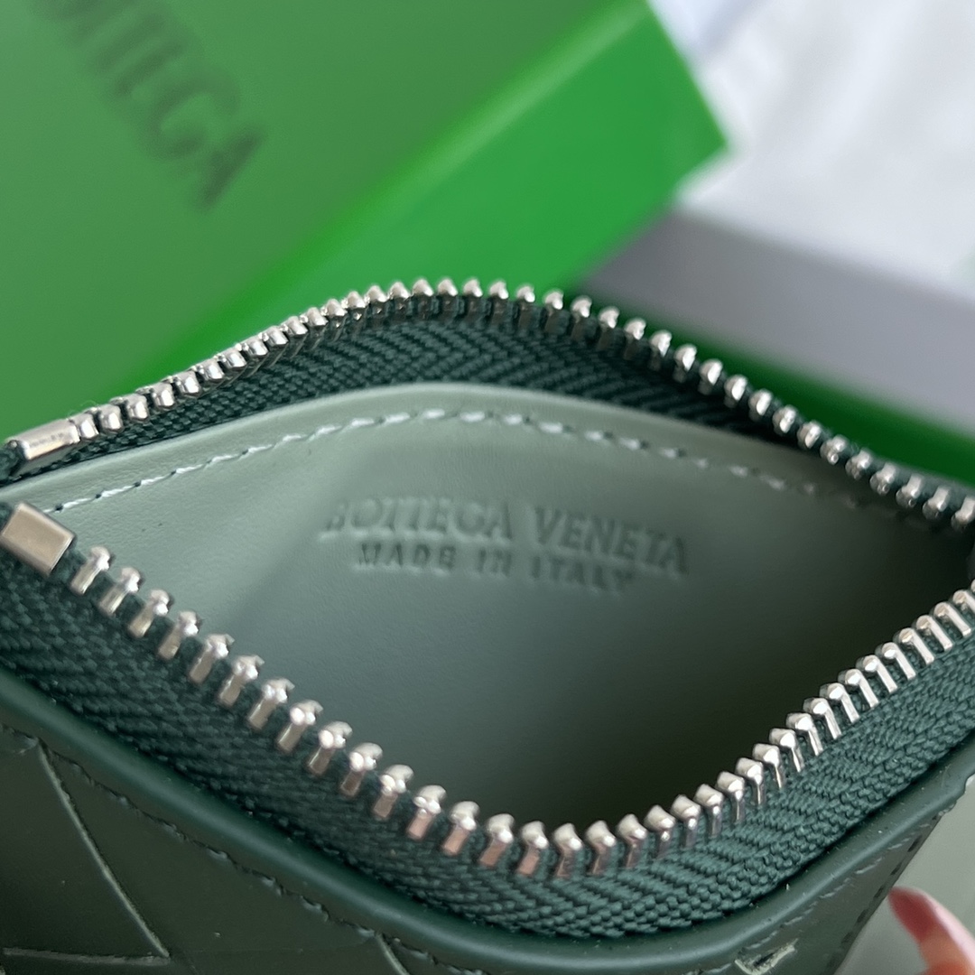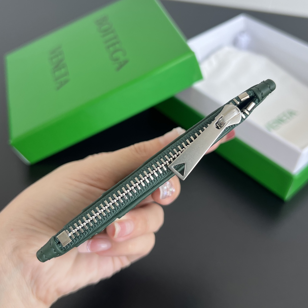 고급 소가죽으로 제작된 BV 편직 지퍼 카드 지갑입니다.