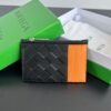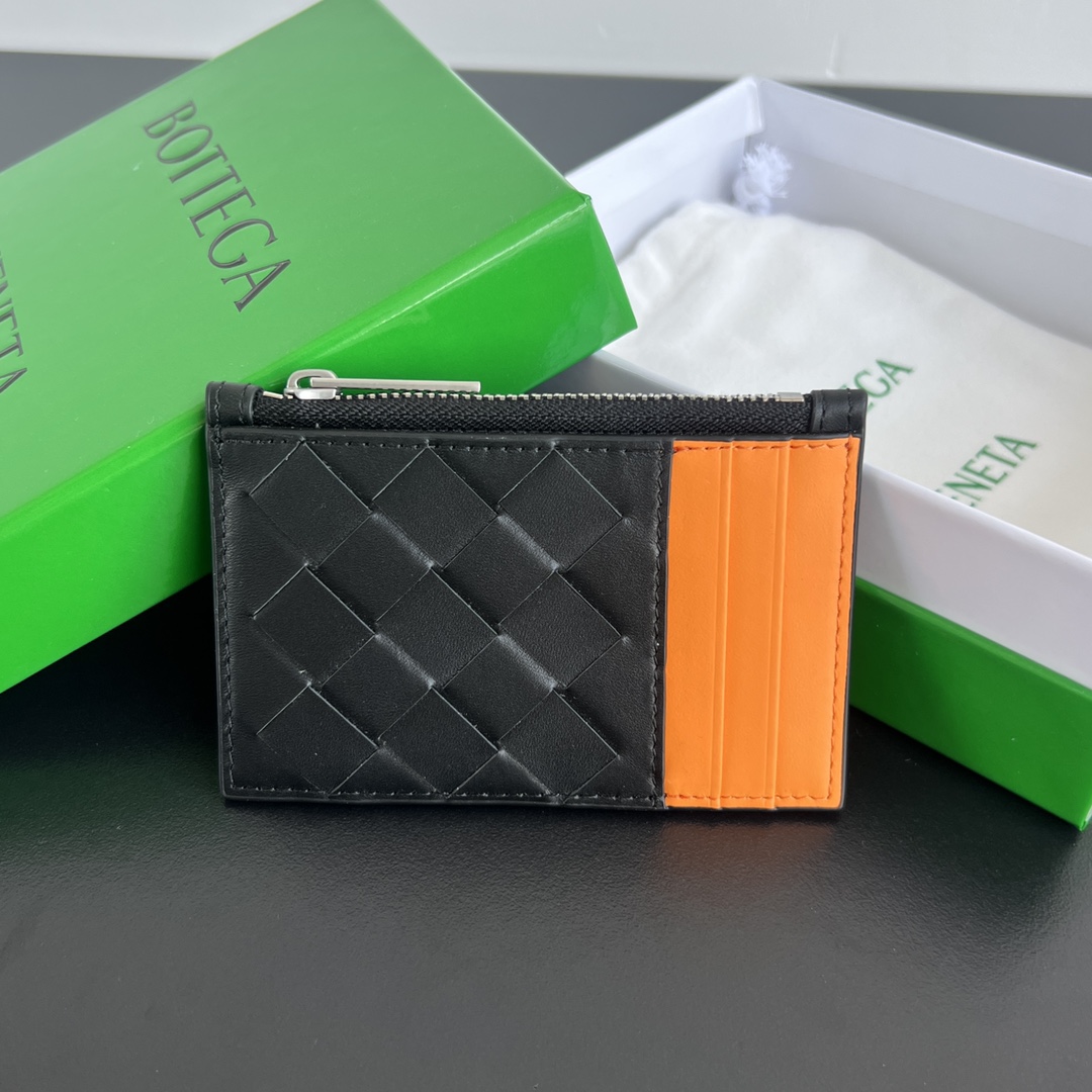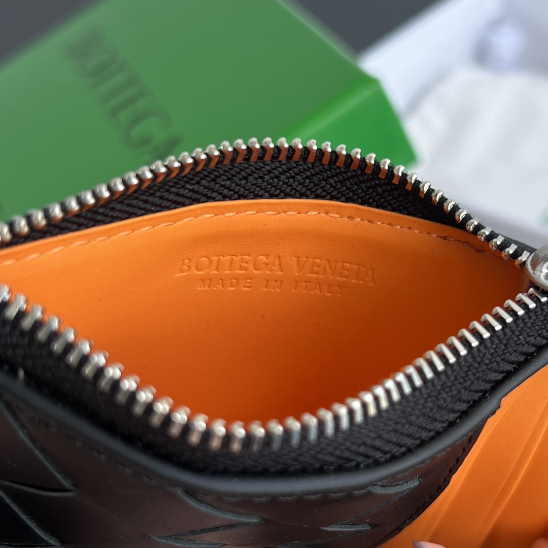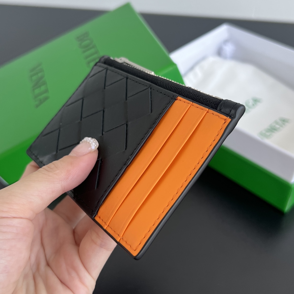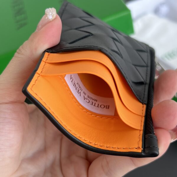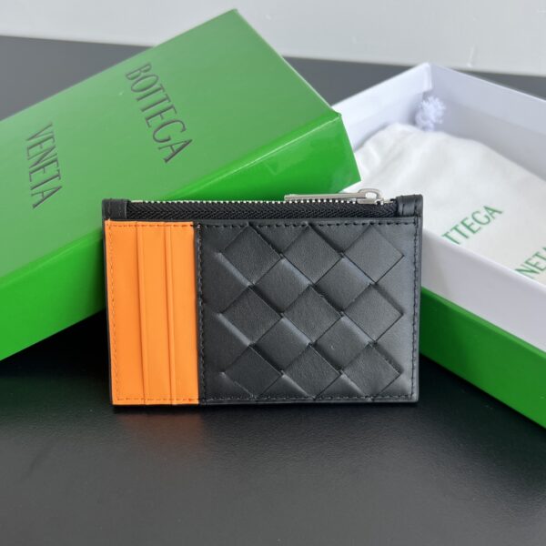 부드러운 소가죽으로 제작된 카드 지갑입니다. 편직된 질감과 화려한 오렌지 색상이 조화를 이루어 세련된 느낌을 줍니다.