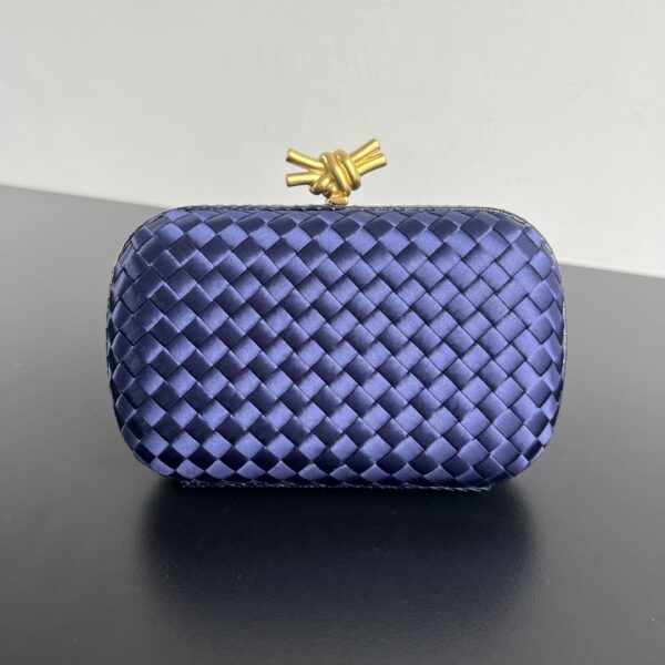 BV Knot 편직 클러치백은 고급스러운 실크 소재로 제작되어 우아함을 더합니다.