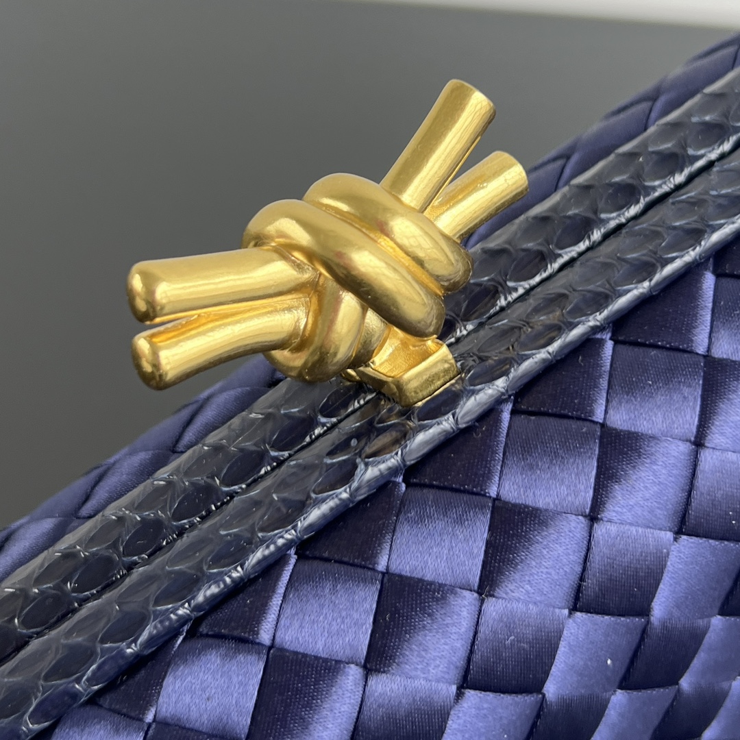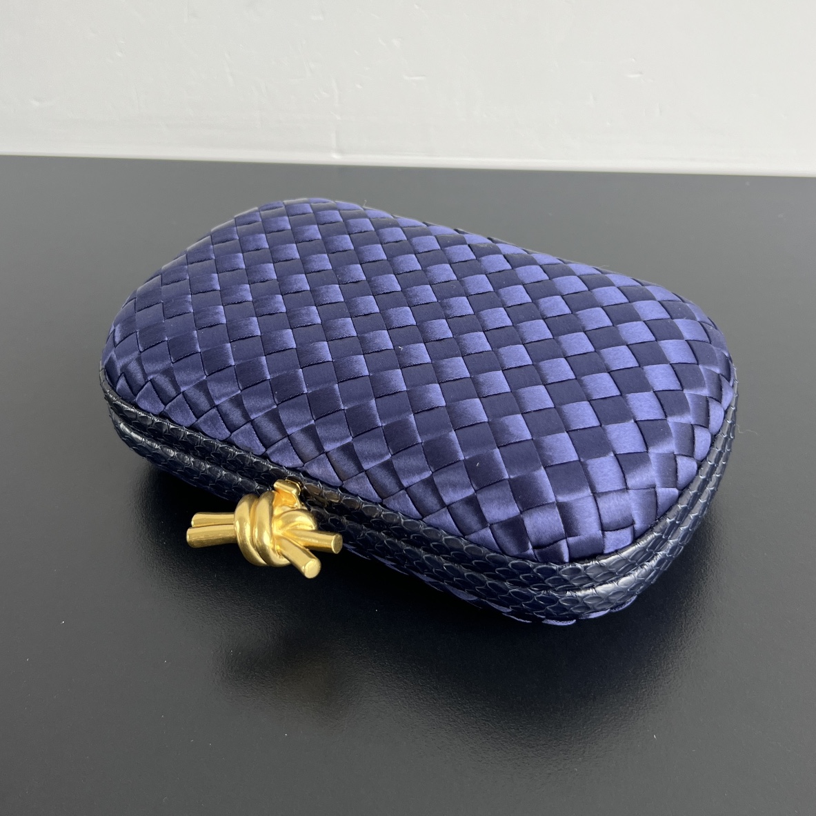 BV Knot 편직 클러치백은 고급스러운 실크 소재로 제작되어 우아함을 더합니다.