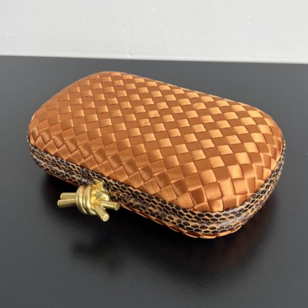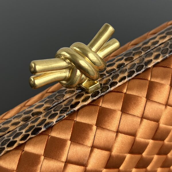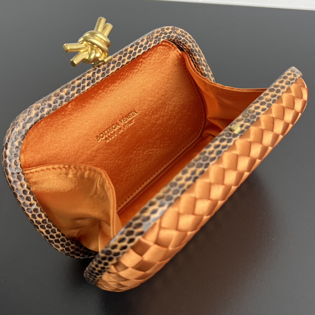 BV Knot 클러치백은 정교한 실크 위빙으로 제작되어 우아함을 더합니다.