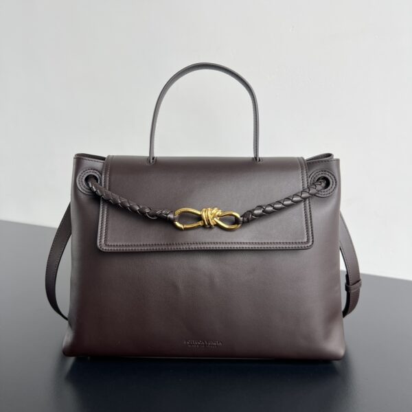 넉넉한 수납 공간과 독특한 디자인으로 실용성을 갖춘 이 가방은 다양한 스타일에 잘 어울립니다. 금색의 디테일이 포인트가 되어 세련된 느낌을 더해줍니다.