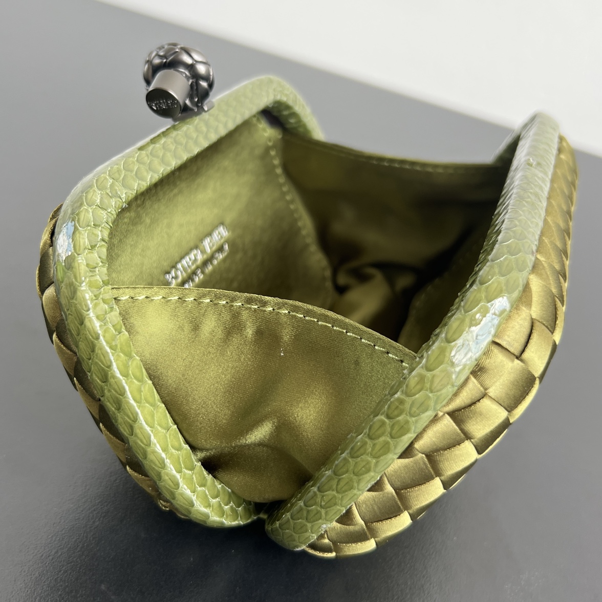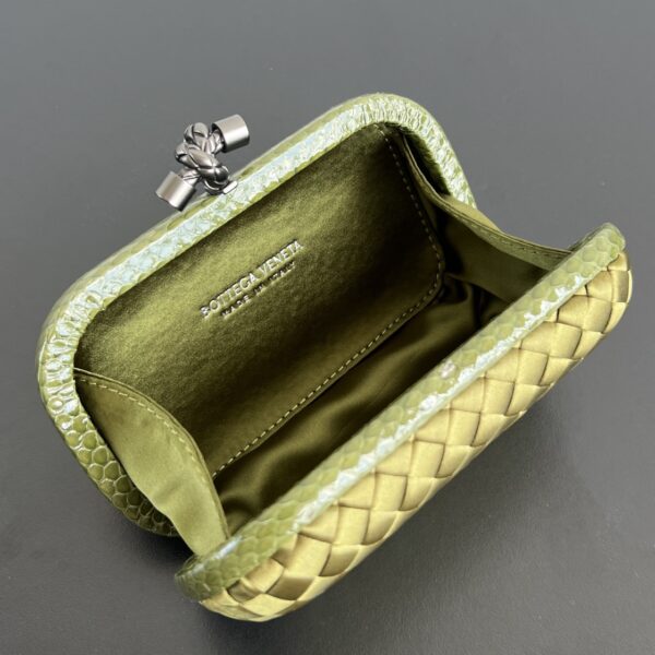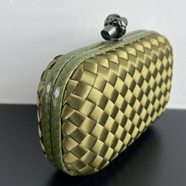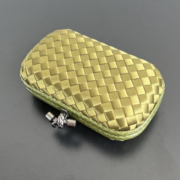 BV Knot 편직 클러치로, 세련된 디자인이 돋보입니다.