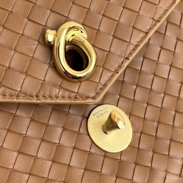 보테가의 Knot Lock 숄더백은 브랜드의 클래식한 편직 공예가 돋보이는 제품입니다.