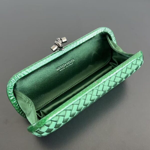 이번 시즌 새롭게 선보이는 보테가의 kont晚宴 손가방은 화려한 실크 편직으로 제작되어 고급스러운 느낌을 자아냅니다.