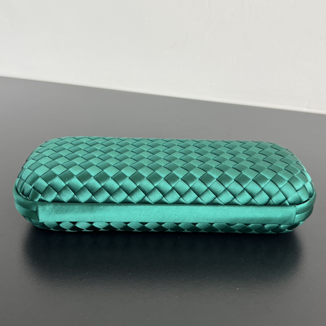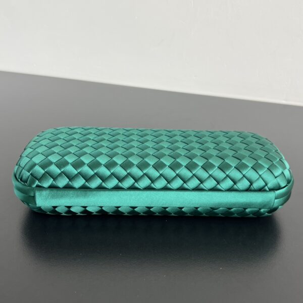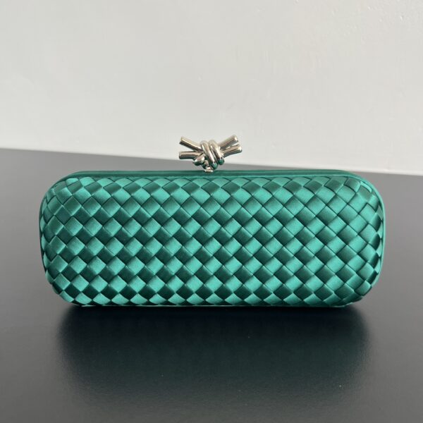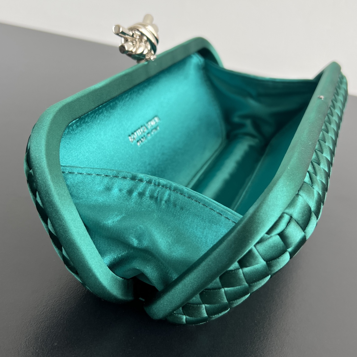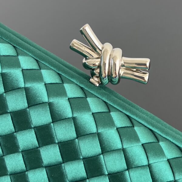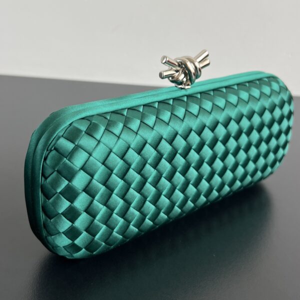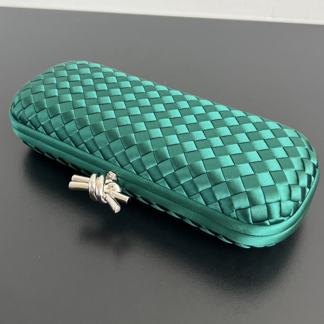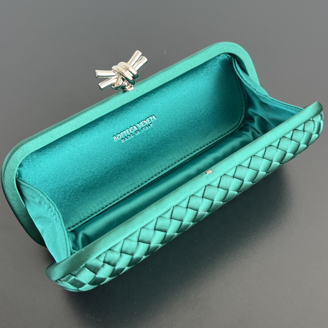 이번 시즌의 특별한 분위기를 담은 보테가의 클러치백입니다. 고급 실크로 제작된 위빙 디자인이 특징으로, 마치 금은 보석처럼 화려한 느낌을 줍니다.