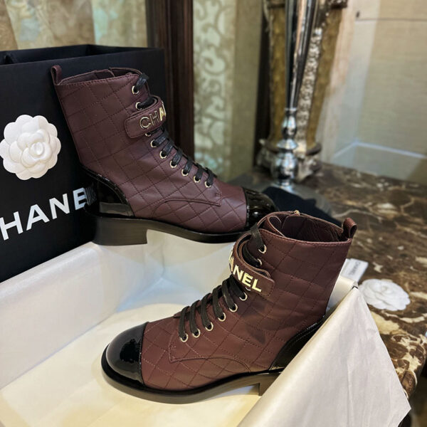 샤넬 【터보】 레터링 퀼팅 컴뱃 부츠 버건디(TJ공장)