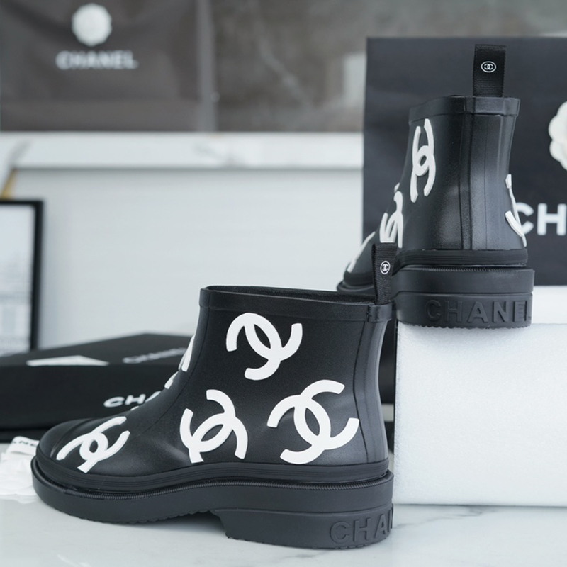 샤넬 【터보】 CC로고 앵클 부츠 카우초크 블랙 화이트 (TJ공장)