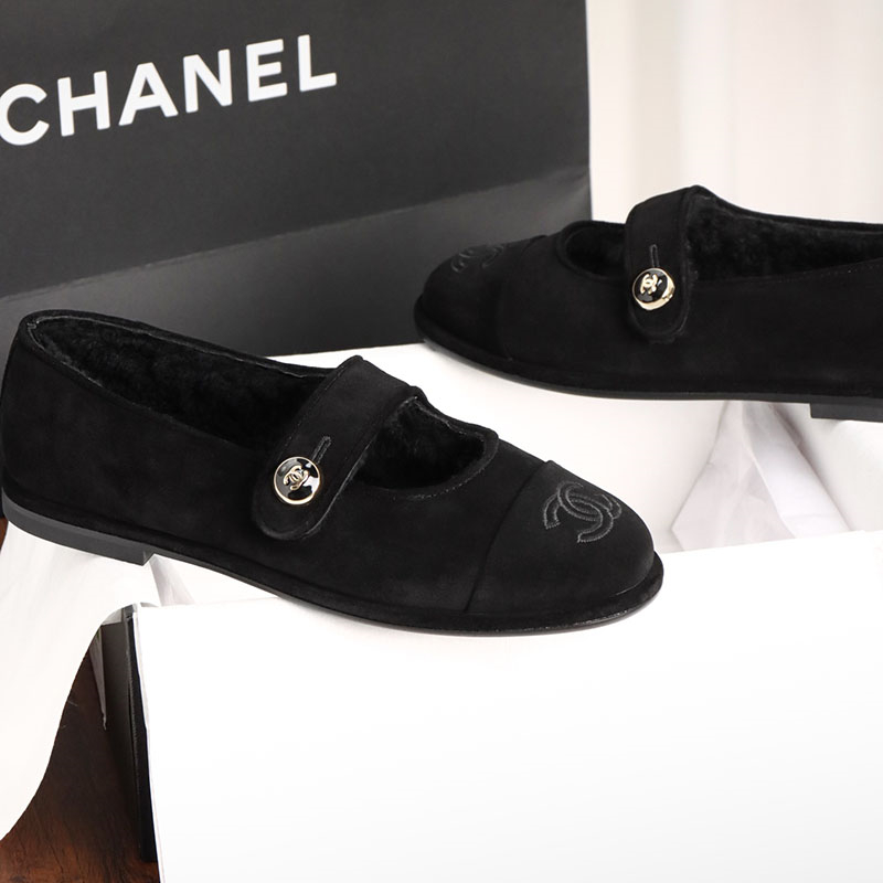 샤넬 【Happy】 스웨이드 시어링 메리제일 플랫 슈즈(TJ공장)