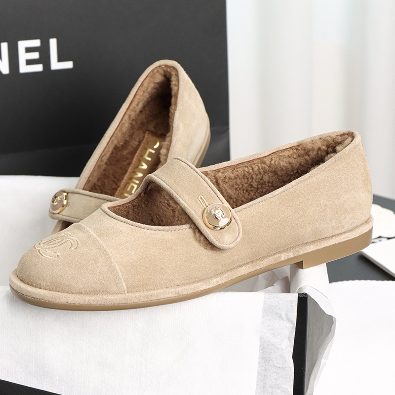 샤넬 【HAPPY】 스웨이드 시어링 메리제일 플랫 슈즈(TJ공장)