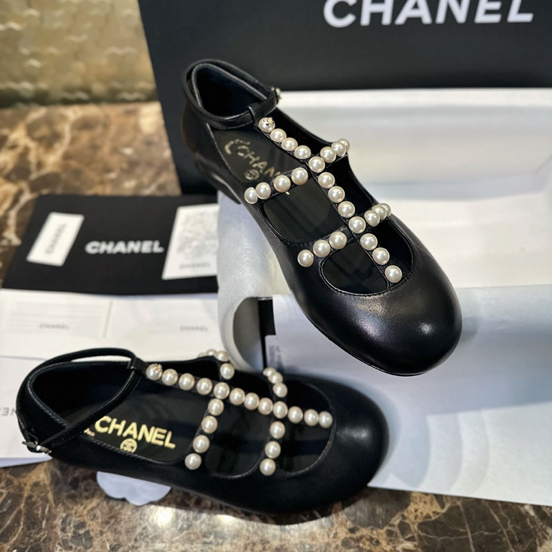 샤넬 【TJ공장】 카프스킨 진주 스트랩 메리제인 구두 (터보) 수량