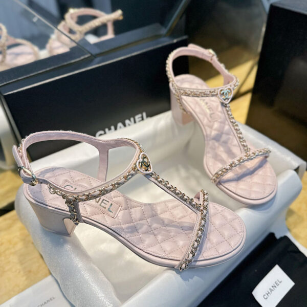 샤넬 【TJ공장】 25c 체인 퀼팅 골드 체인 스트랩 플랫 샌들 핑크(터보)