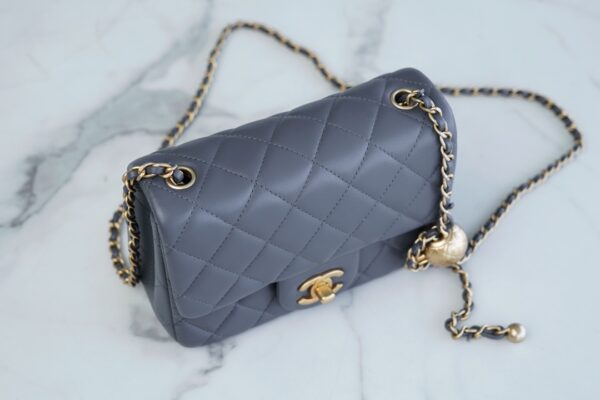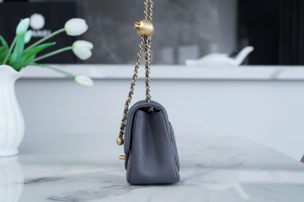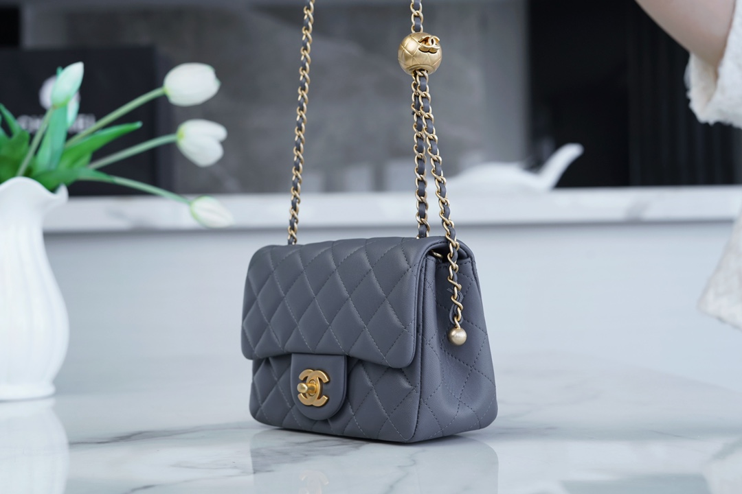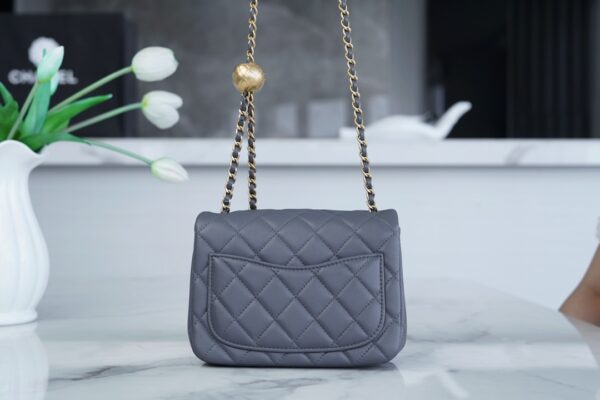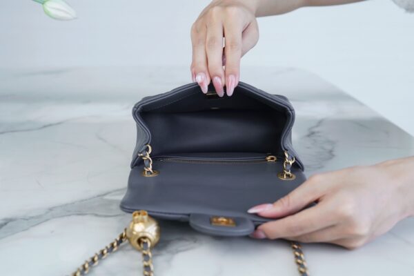 부드러운 질감의 소재로 제작된 샤넬 금속구형 숄더백입니다.