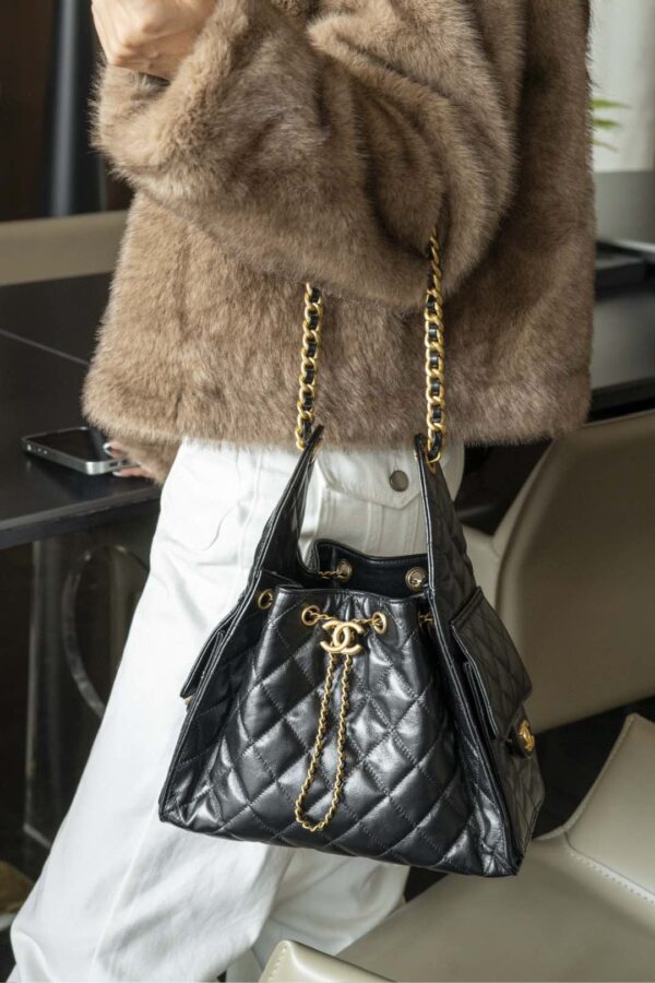 샤넬 (팬더) 대여주름 퀼팅 블랙