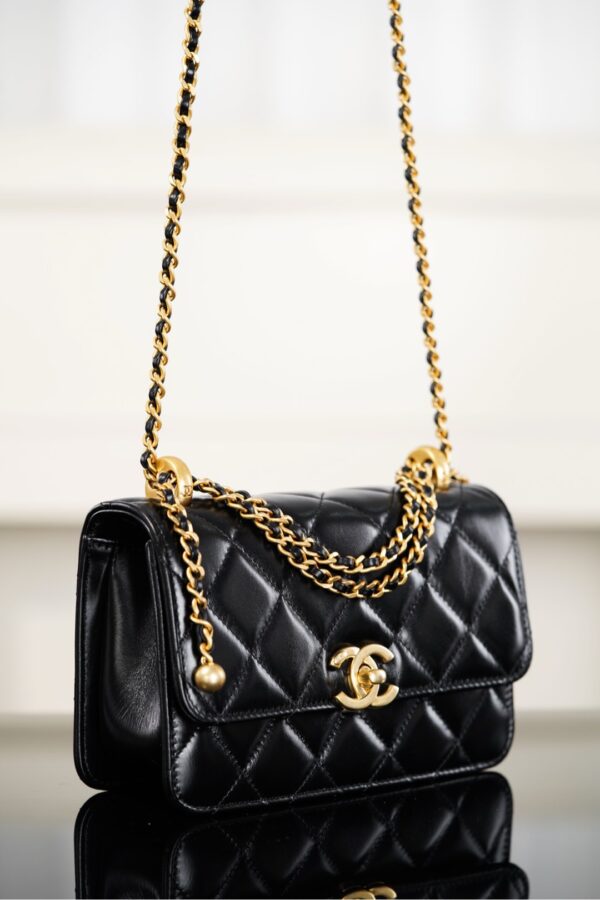 빈티지한 골드 하드웨어와 새롭게 업그레이드된 블랙 내부가 조화를 이루며, 샤넬의 전통적인 미적 감각과 실용성을 동시에 갖추고 있습니다.