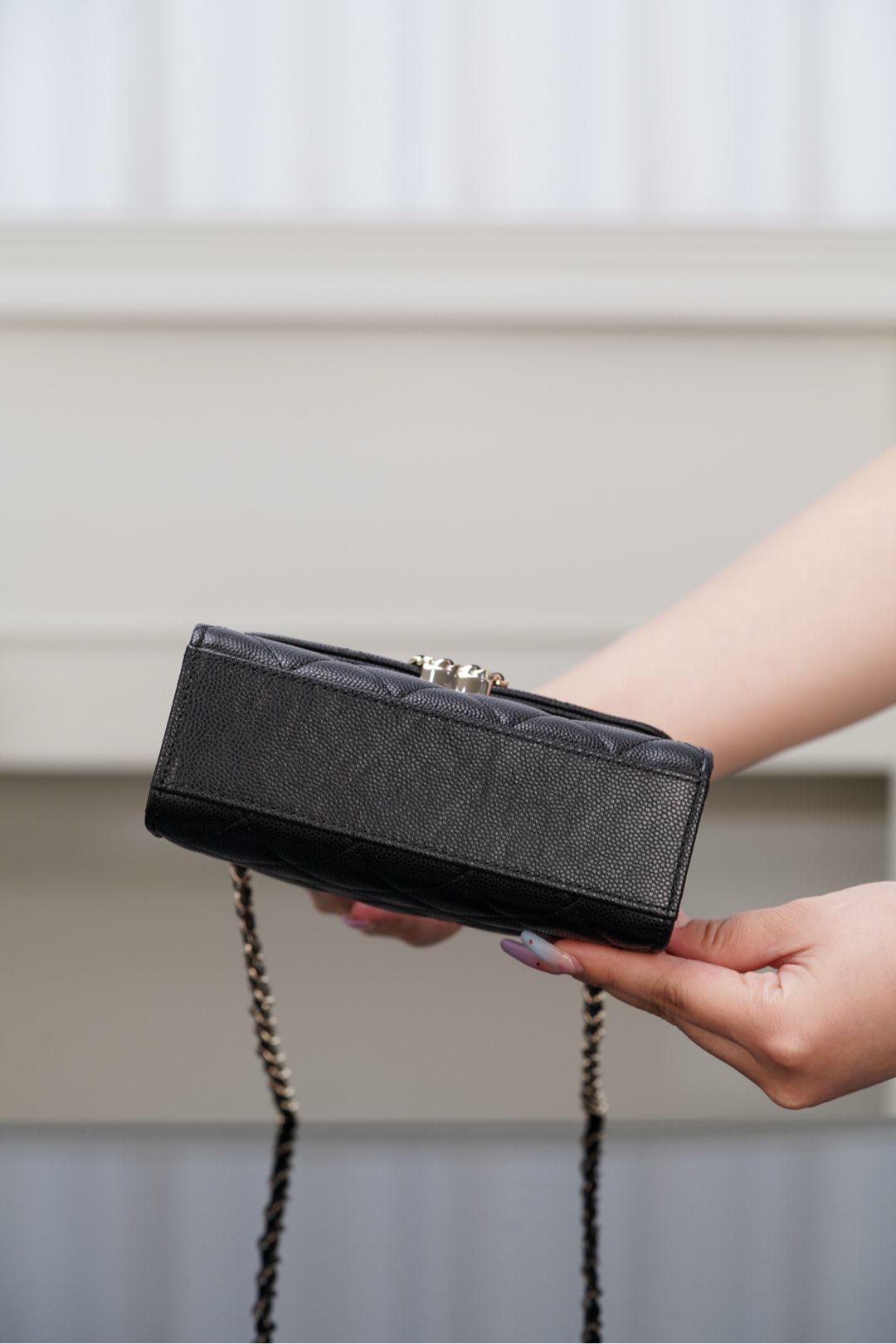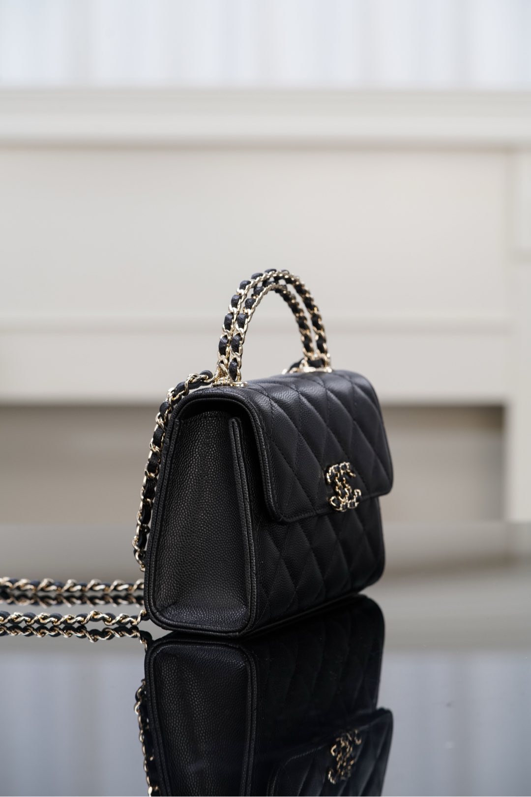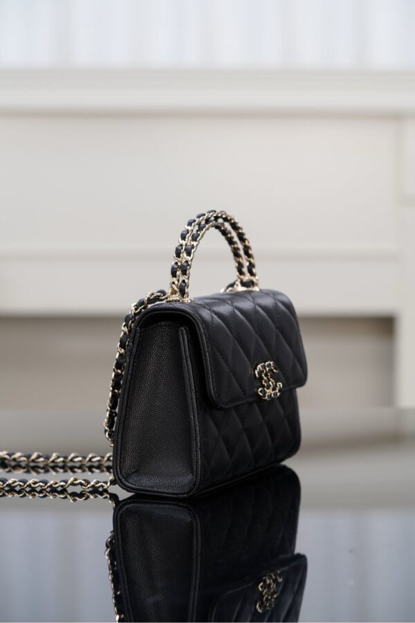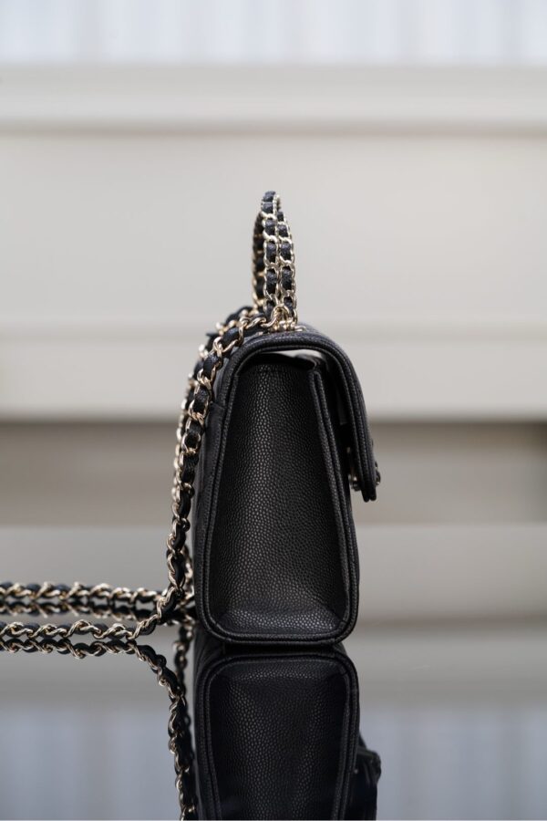 리자드 질감의 고급스러운 가죽으로 제작되어 손에 쥐었을 때의 촉감이 뛰어납니다. 체인 스트랩과 손잡이가 조화를 이루어 다양한 착용 방식으로 활용할 수 있습니다.