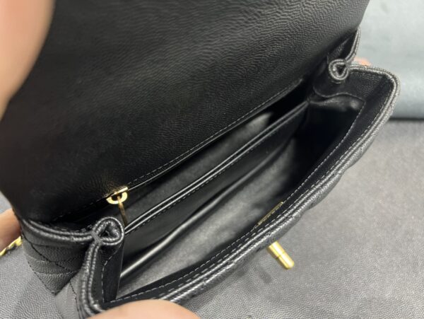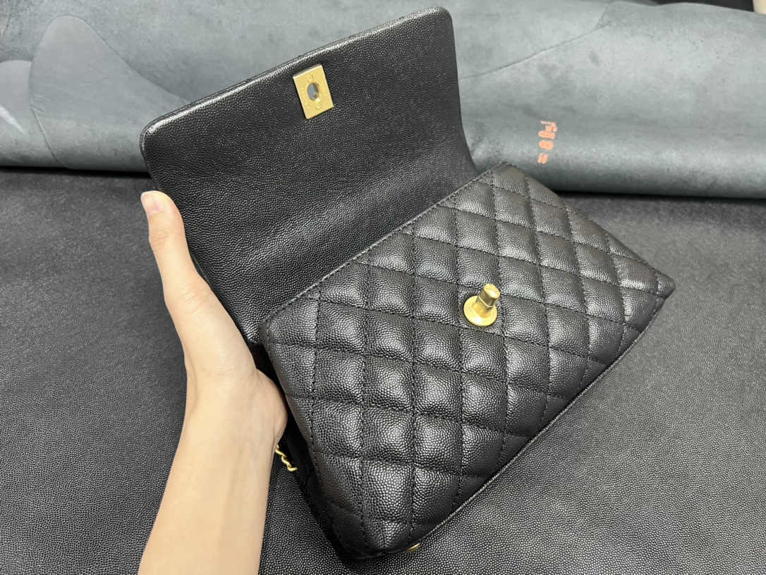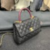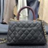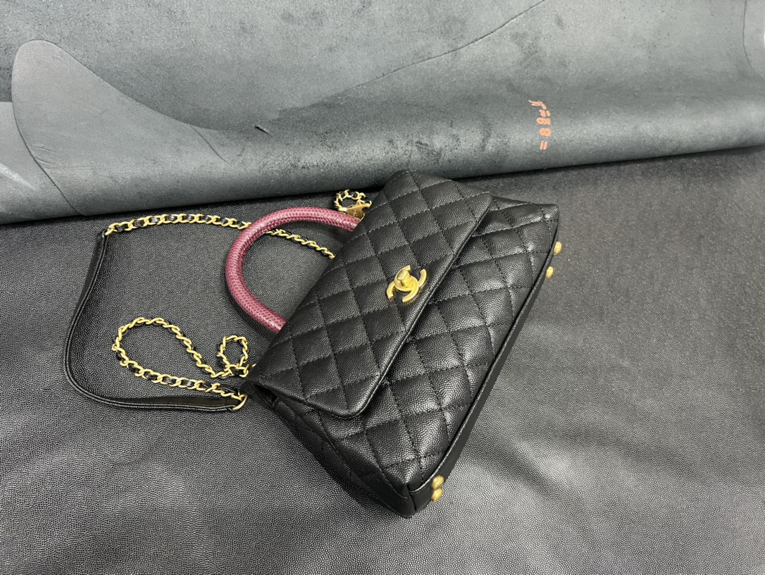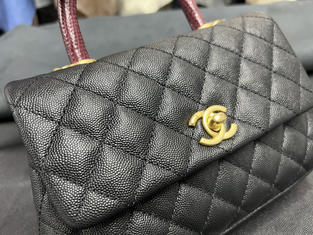 샤넬의 코코핸들 미니백은 리자드 가죽으로 제작되어 고급스러운 질감을 자랑합니다.