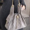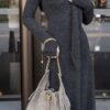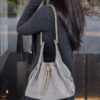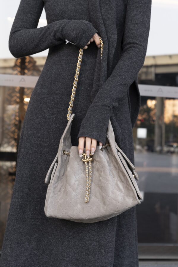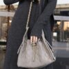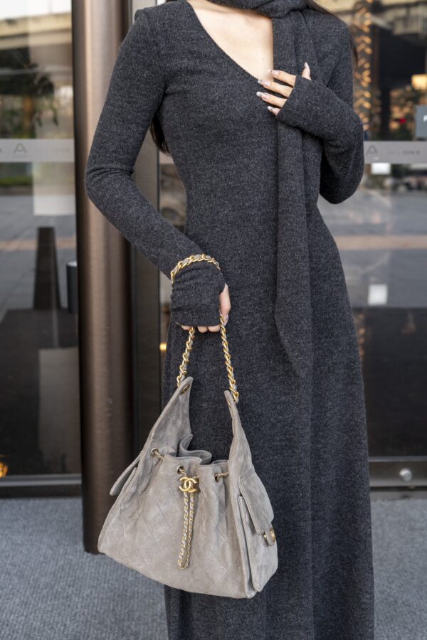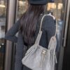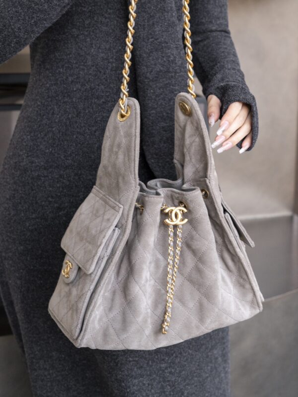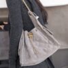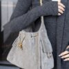 부드러운 그레이 색상의 스웨이드 소재로 제작된 이 백은 고급스러움과 세련됨을 동시에 갖추고 있습니다.