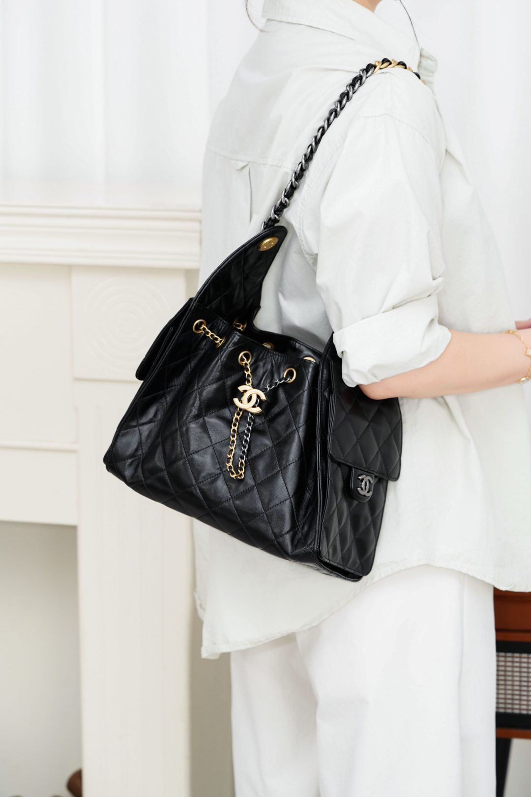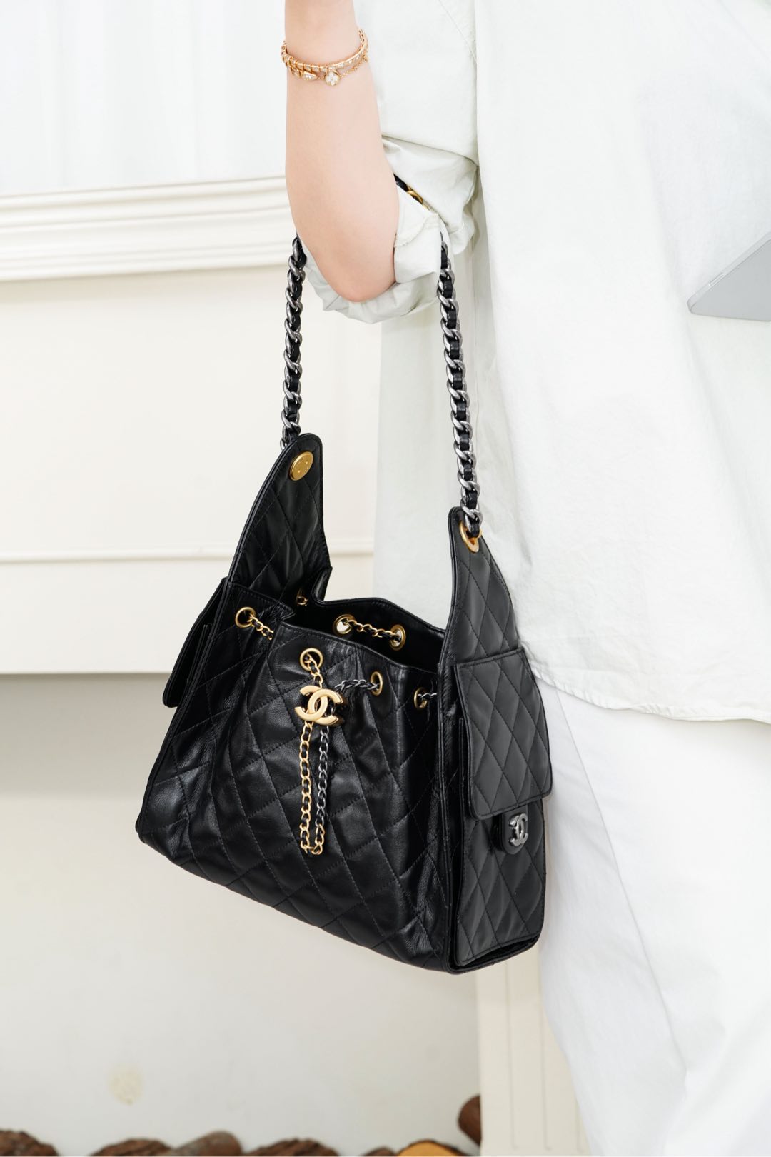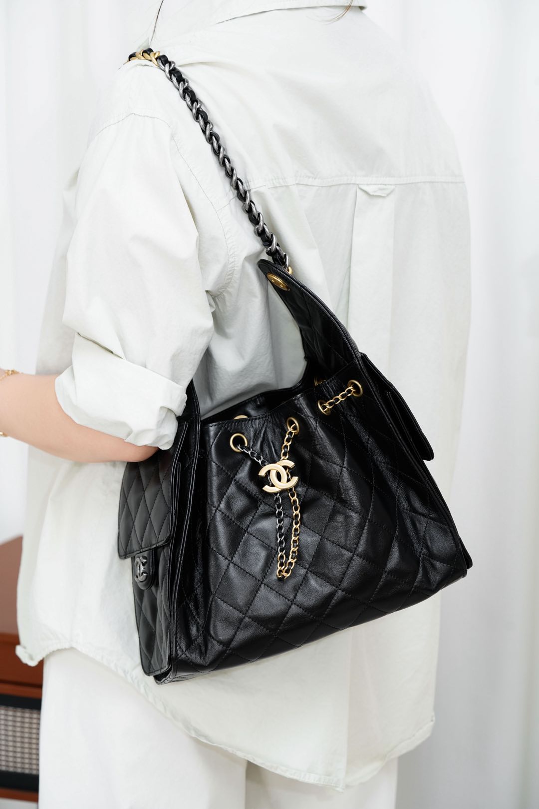 샤넬의 클래식 퀼팅 토트백은 세련된 디자인과 실용성을 겸비한 아이템입니다.